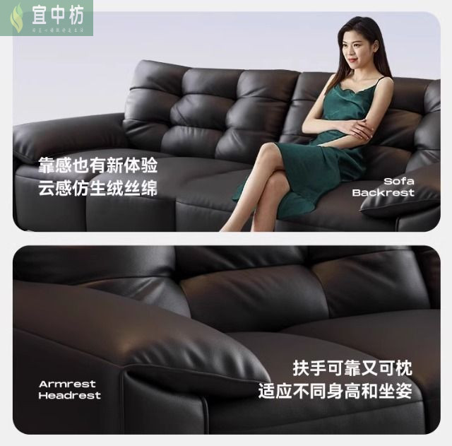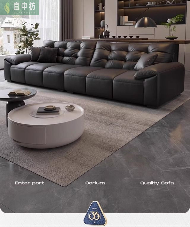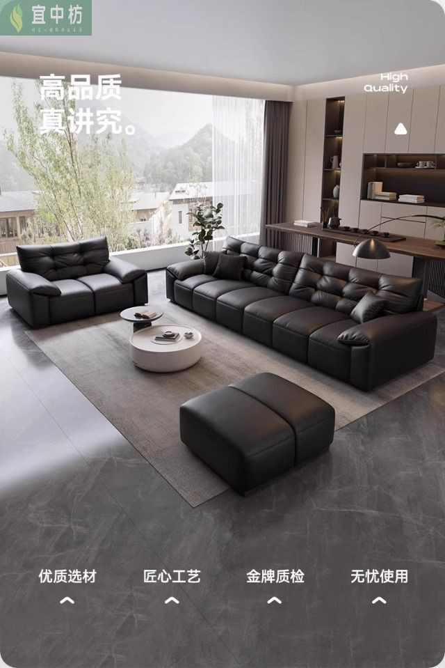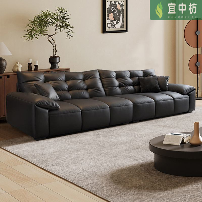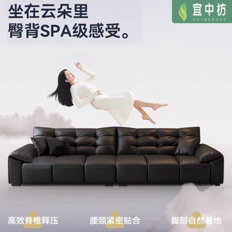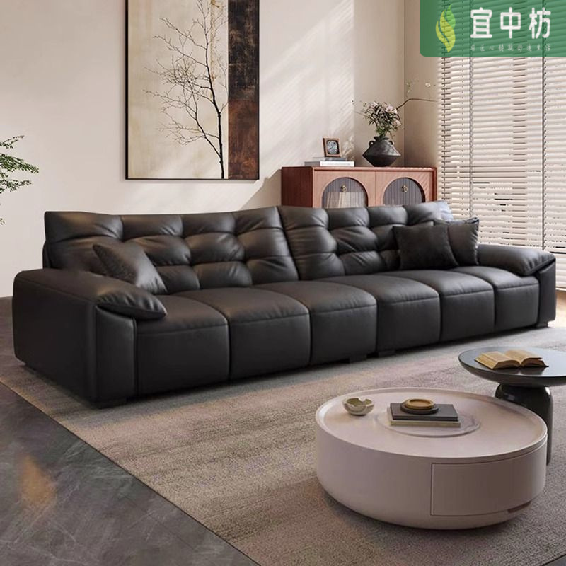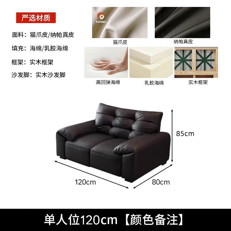 意式极简生态真皮沙发大黑熊轻奢家用客厅大小户型直排猫抓皮沙发