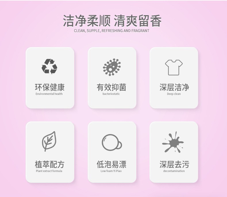 поручень; Глубокая очистка; антибактериальный; Удалить клещей; Защита цвета; Стойкий аромат; удалить пятна; гибкий; Низкое содержание пены и легкость отбеливания.