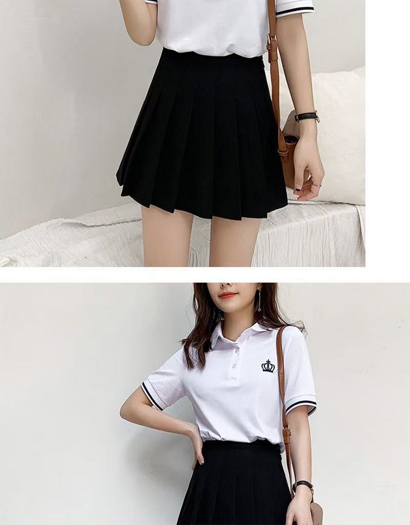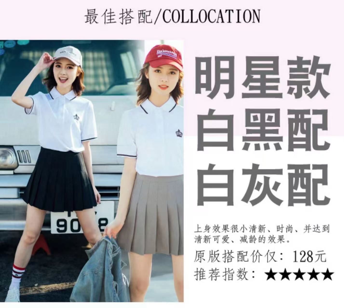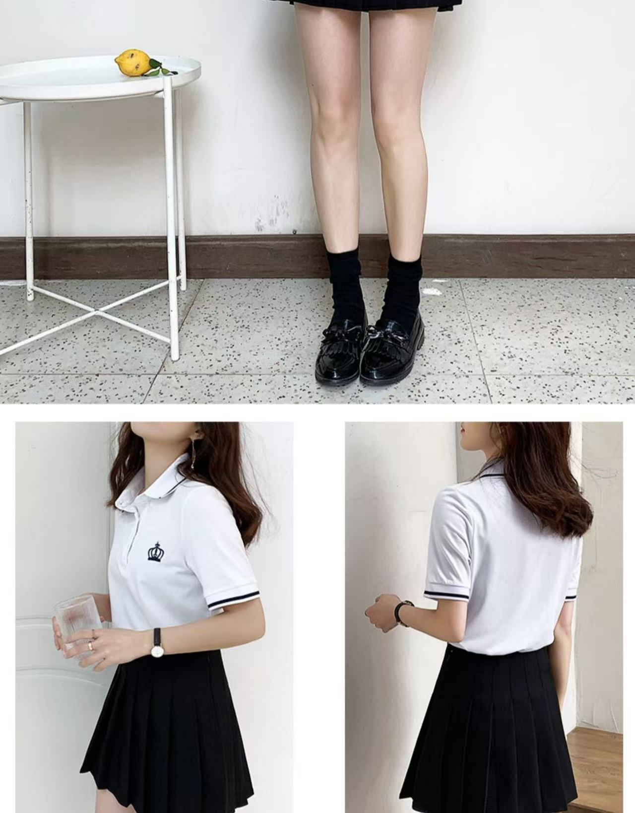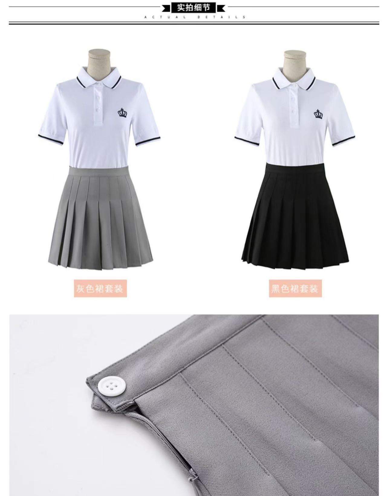 Белая футболка с логотипом Crown + черная юбка; Белая футболка с логотипом Crown + серая юбка; Белая футболка с логотипом короны для мужчин и женщин; Белая футболка без принта + черная юбка; Белая футболка без этикетки + серая юбка; Белая футболка без бренда для мужчин и женщин.; серая юбка; черная юбка
