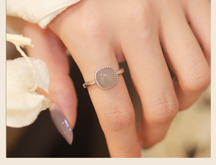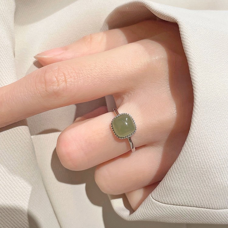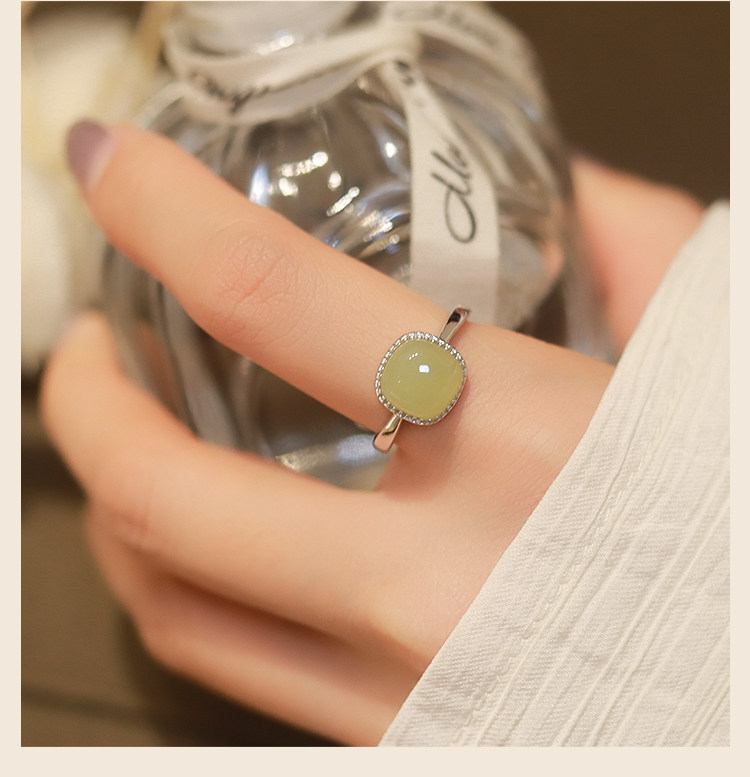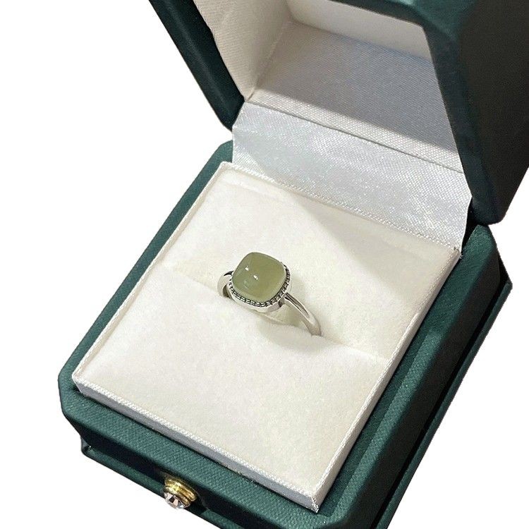 Wengkai S925 Hetian Jade Маленькое кольцо в форме кубика сахара для женщин, кольцо из белого нефрита с дизайном, новый тренд 2025 года.