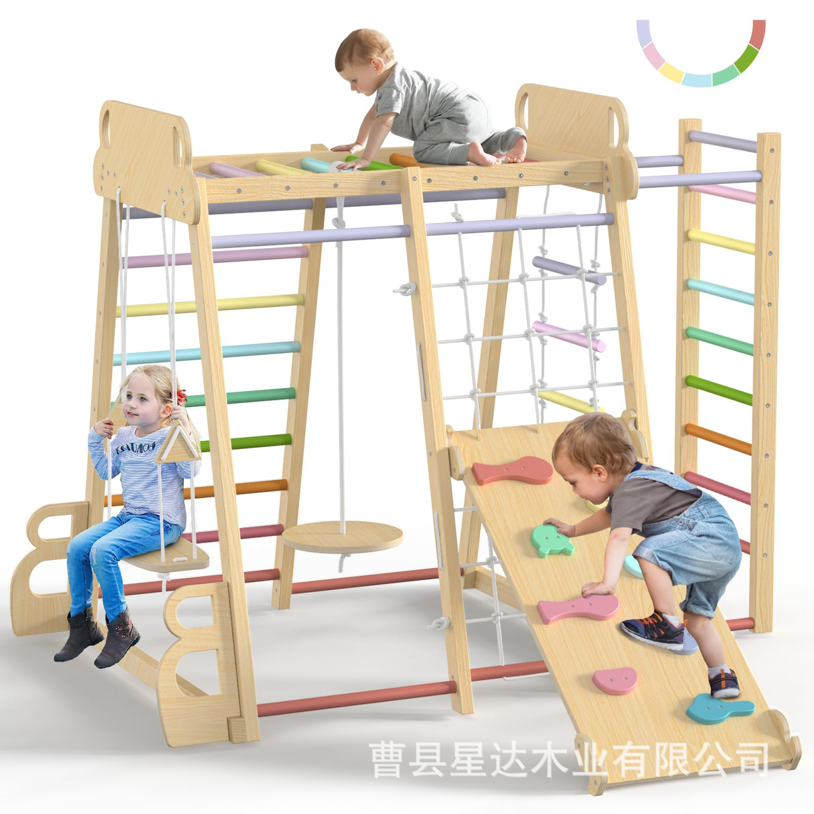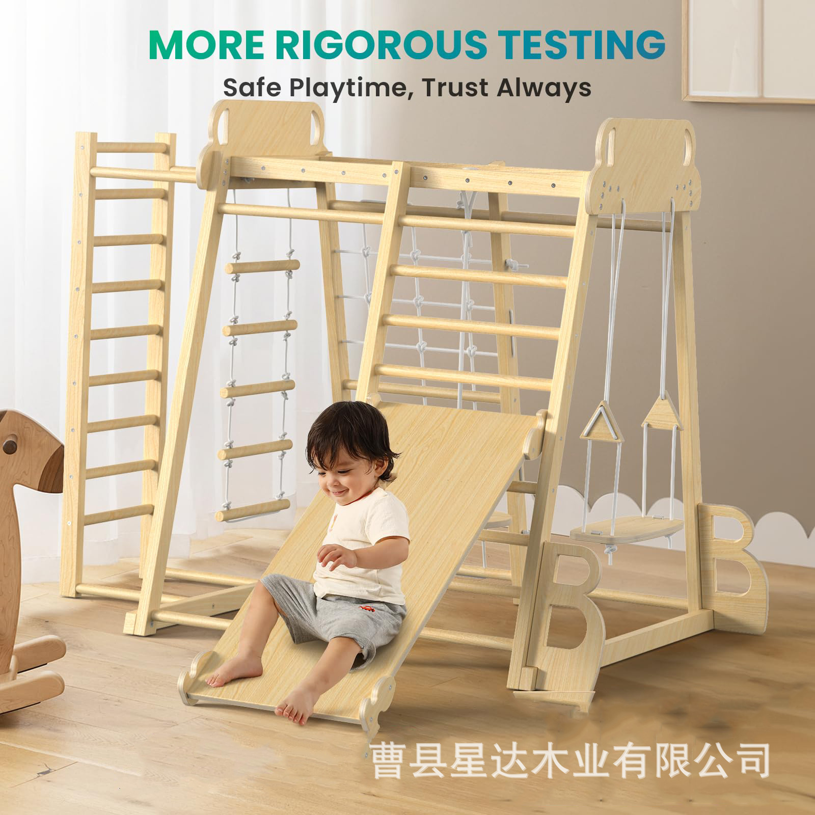 Деревянная детская скалолазная подставка для домашнего интерьера комбинированная игрушка детское скалолазание качели горка комбинированная детская игрушка