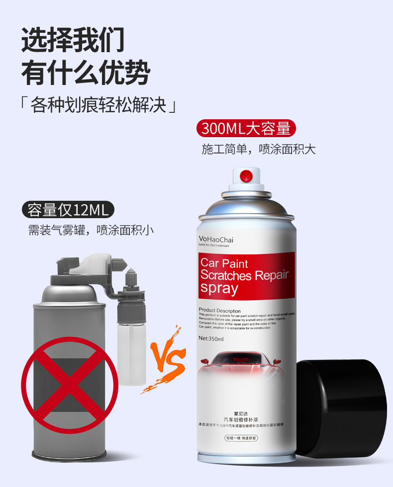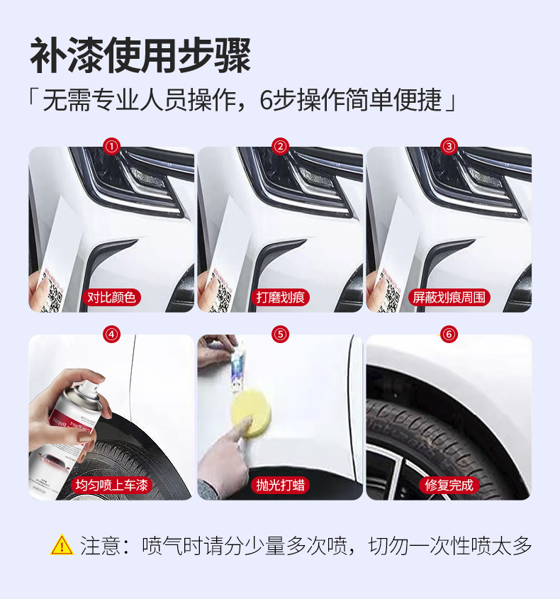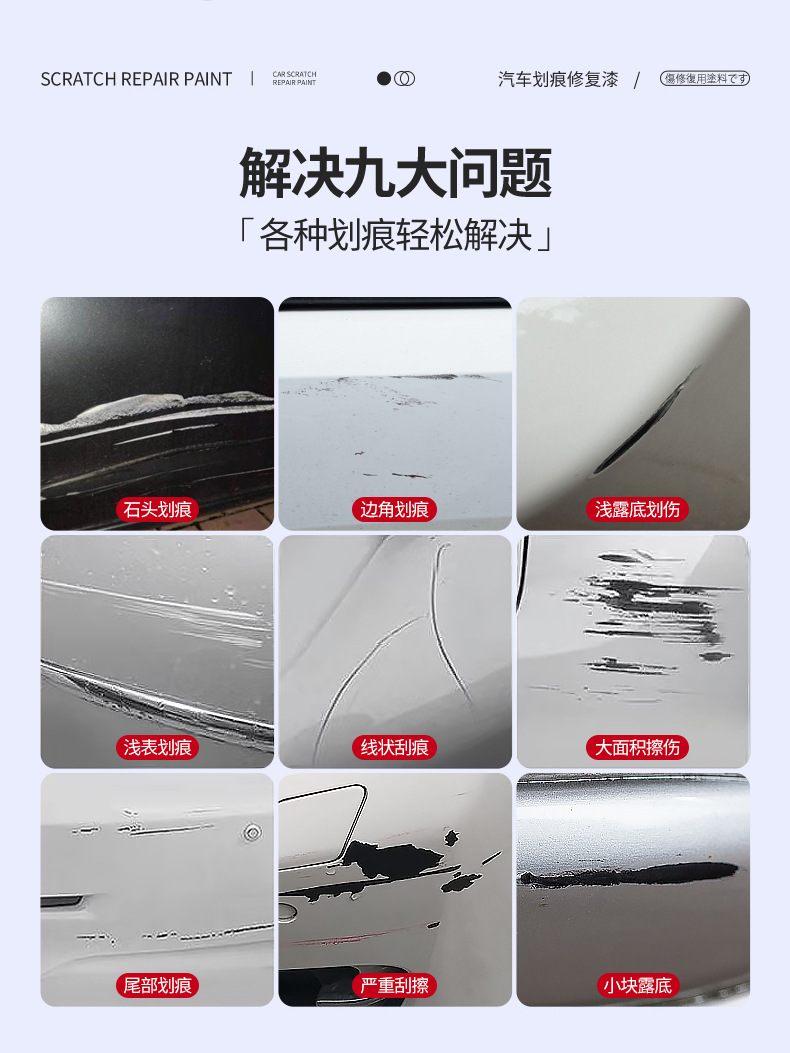 【产品特点】:常在闹市跑的汽车,车身漆面难免会有一些难看的刮痕。但是为一点小刮痕就进修理厂烤漆,似乎太不经济了,因此利用补漆笔来修补刮痕就成了经济实惠的好办法。