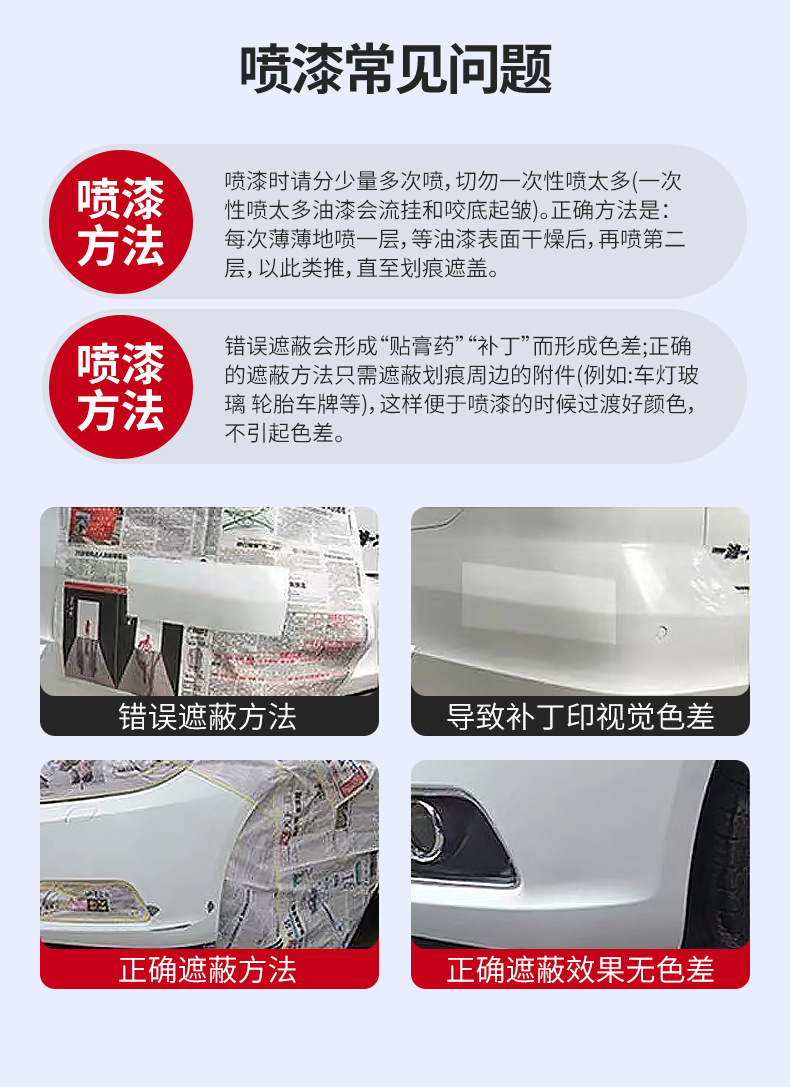 2.使用前请务必去除车漆面上的油污、车蜡、车釉;若有铁锈,可用细砂纸清除。