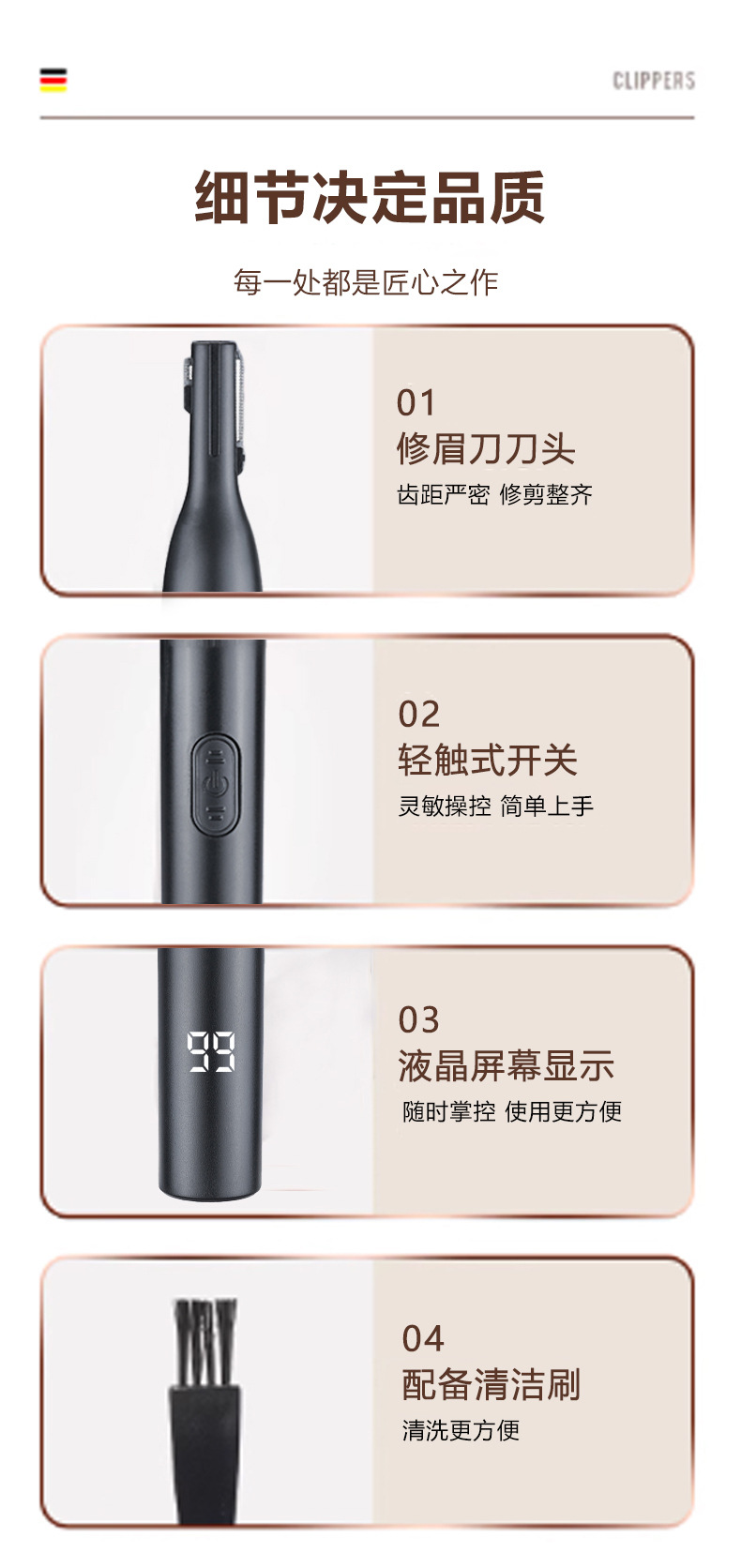 Трансграничный оптовый перезаряжаемый электрический триммер для бровей, артефакт, удобный моющийся триммер для бровей с цифровым дисплеем, унисекс
