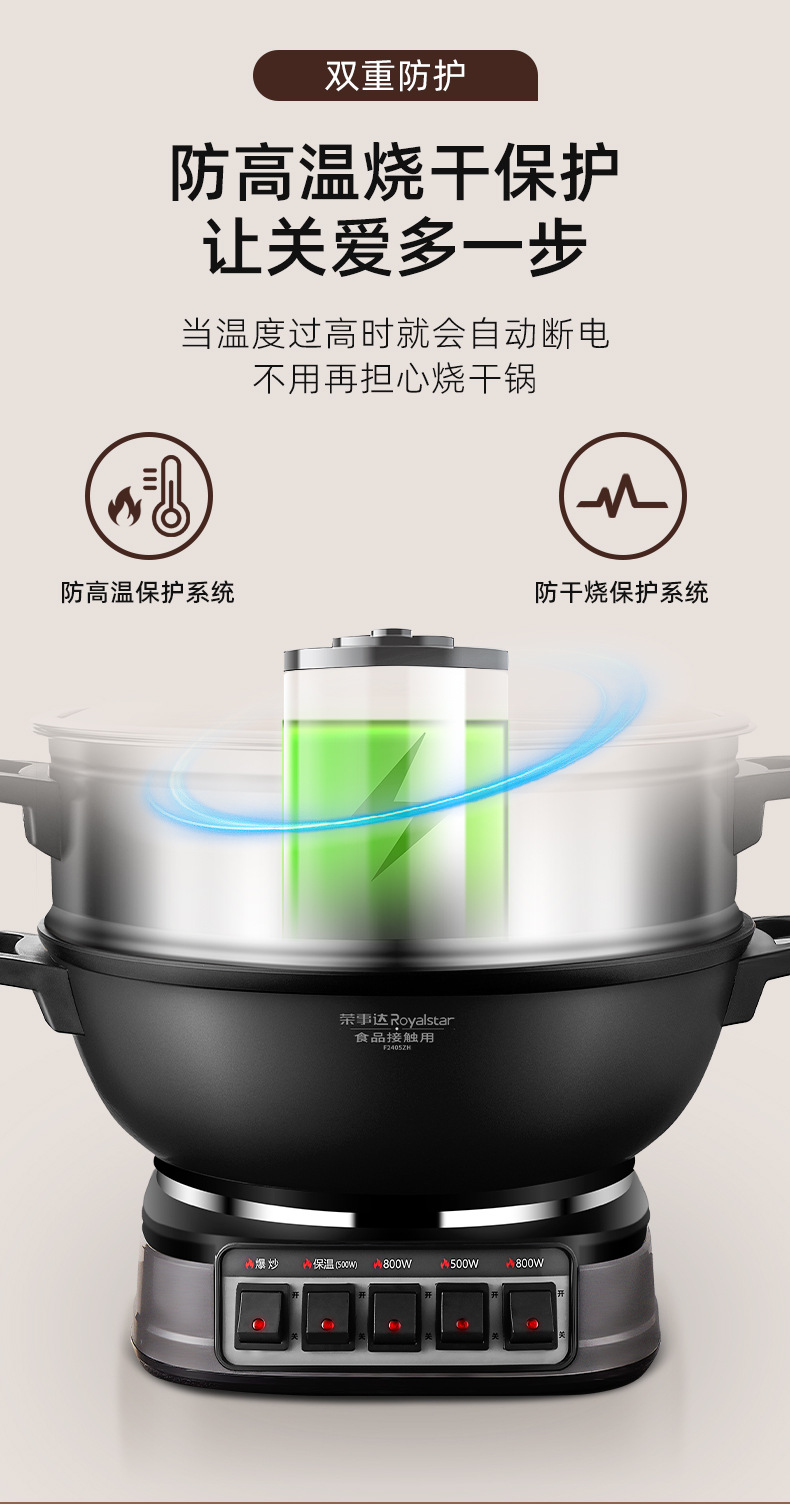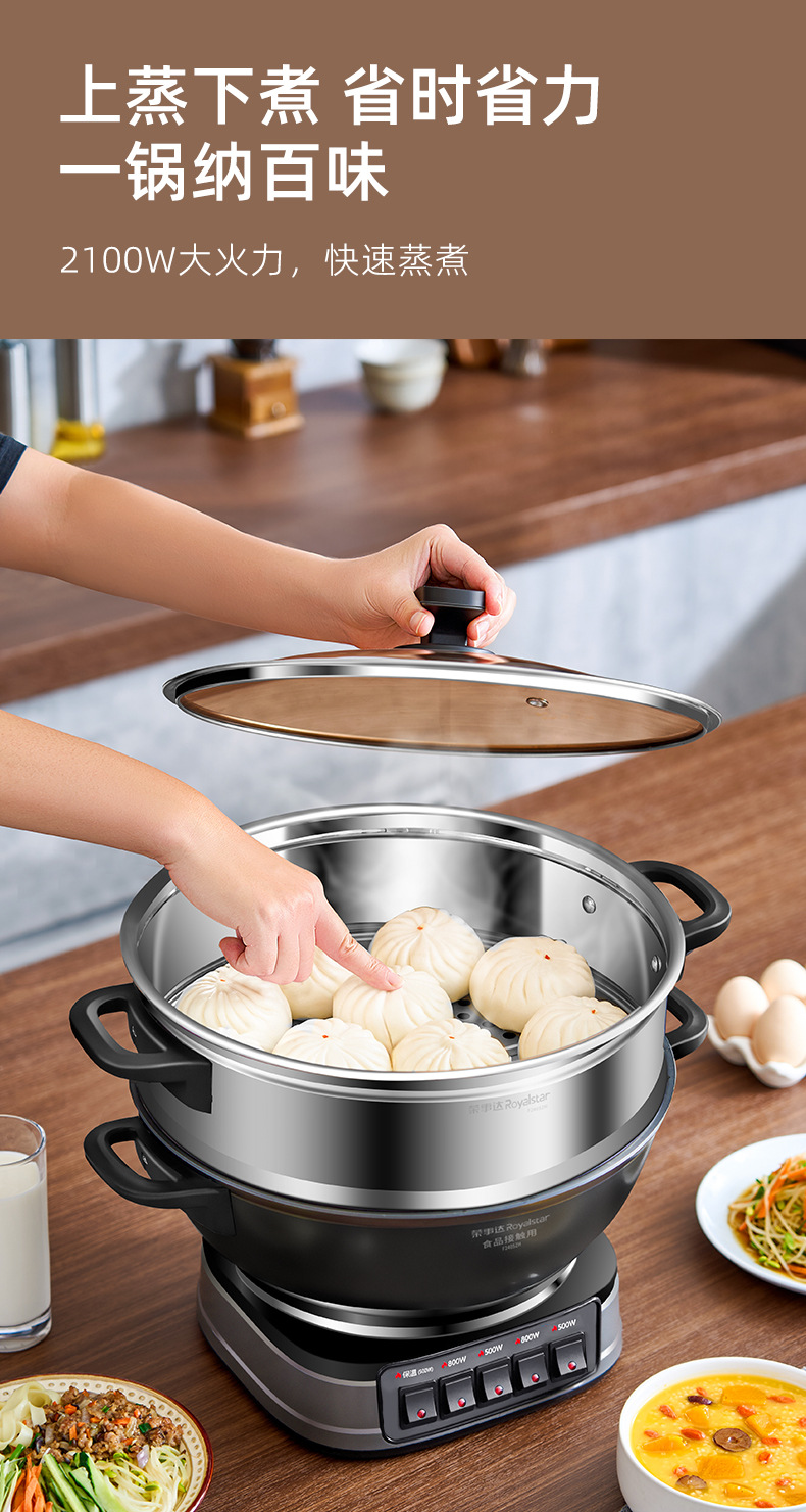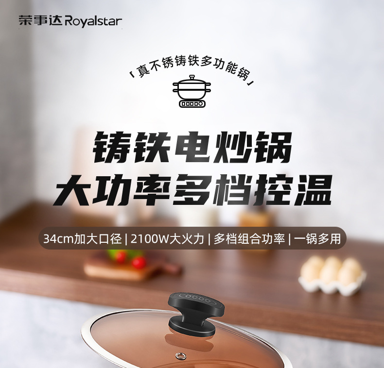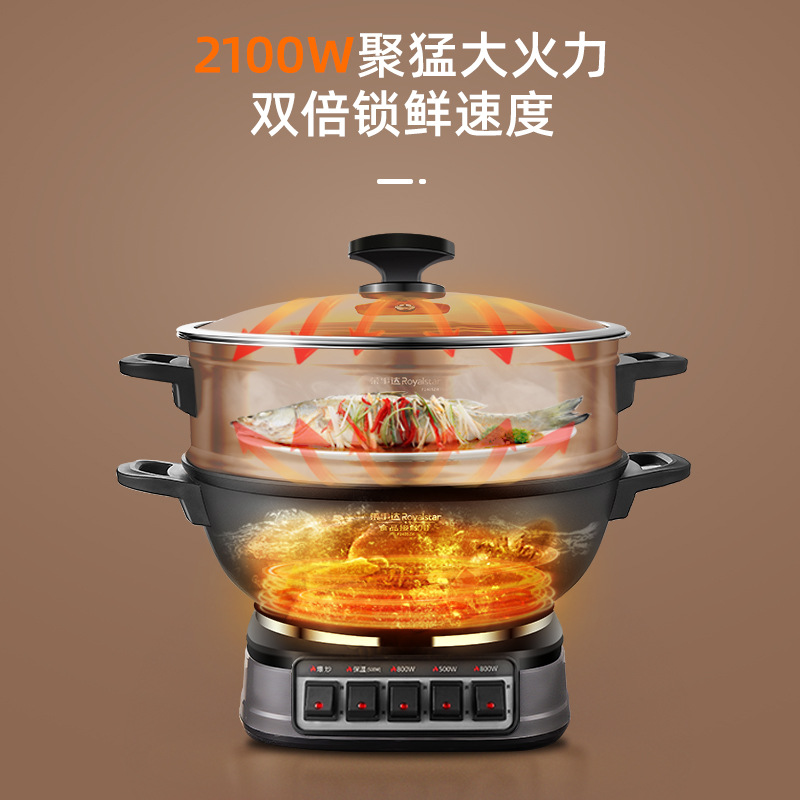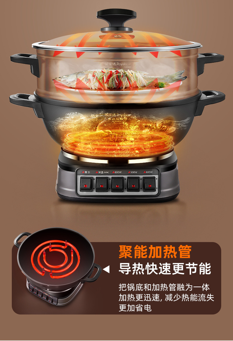 Электрический вок Rongshida бытовой многофункциональный электрический пароход утолщает и углубляет чугунный вок