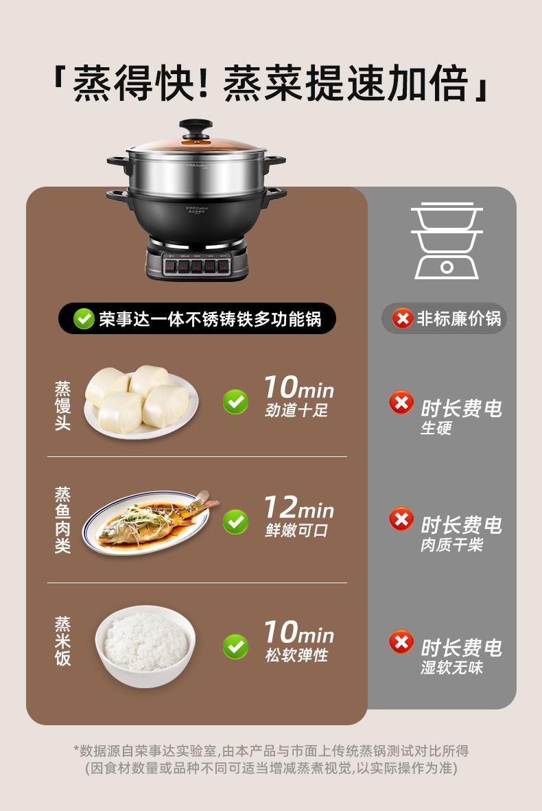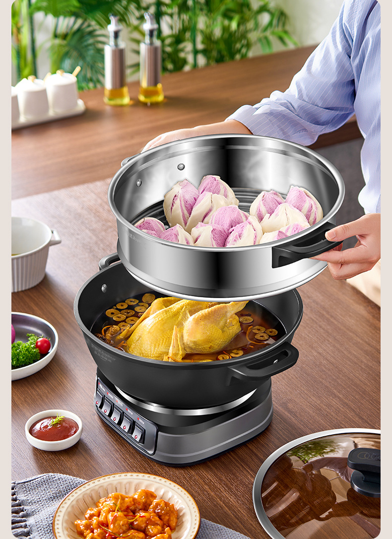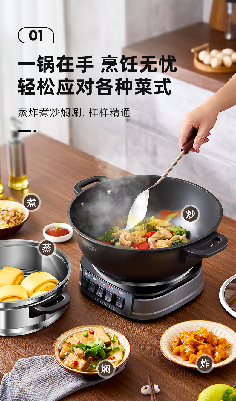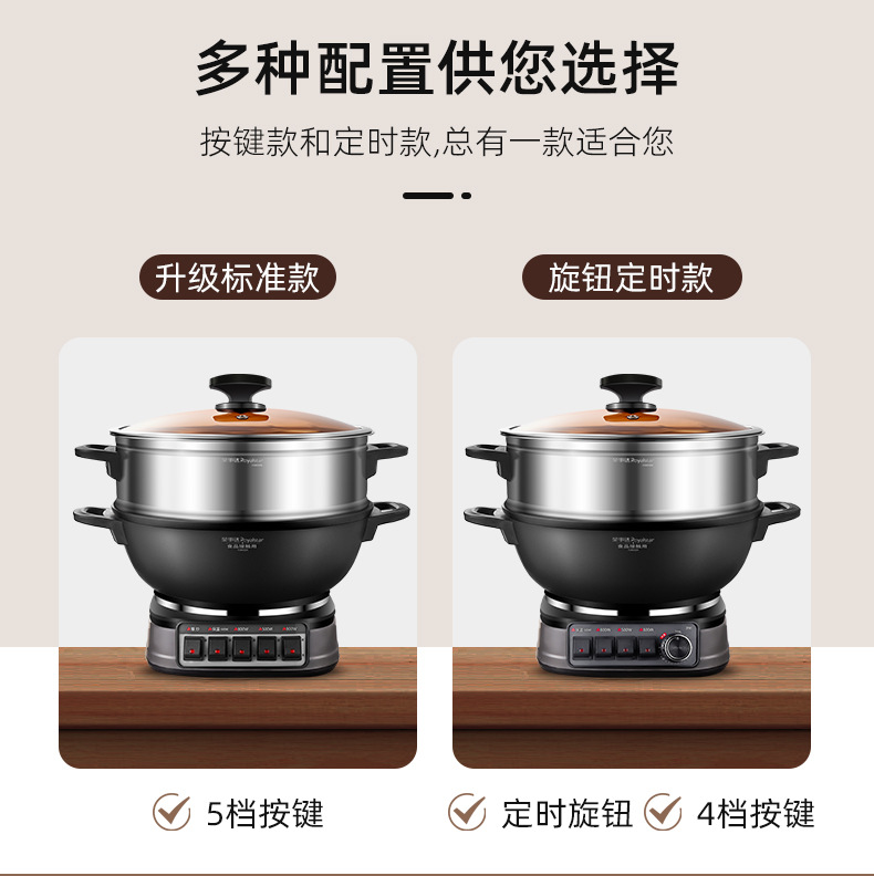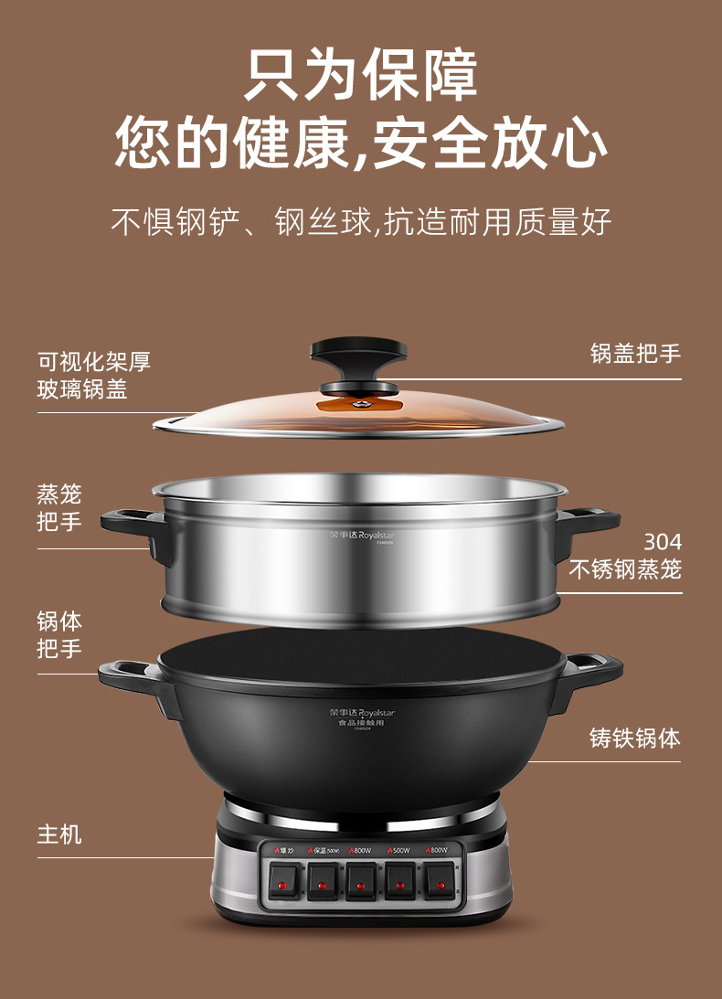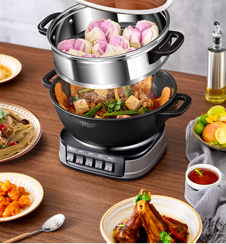 Электрический вок Rongshida бытовой многофункциональный электрический пароход утолщает и углубляет чугунный вок