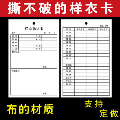 现货样衣确认卡 每100张/捆