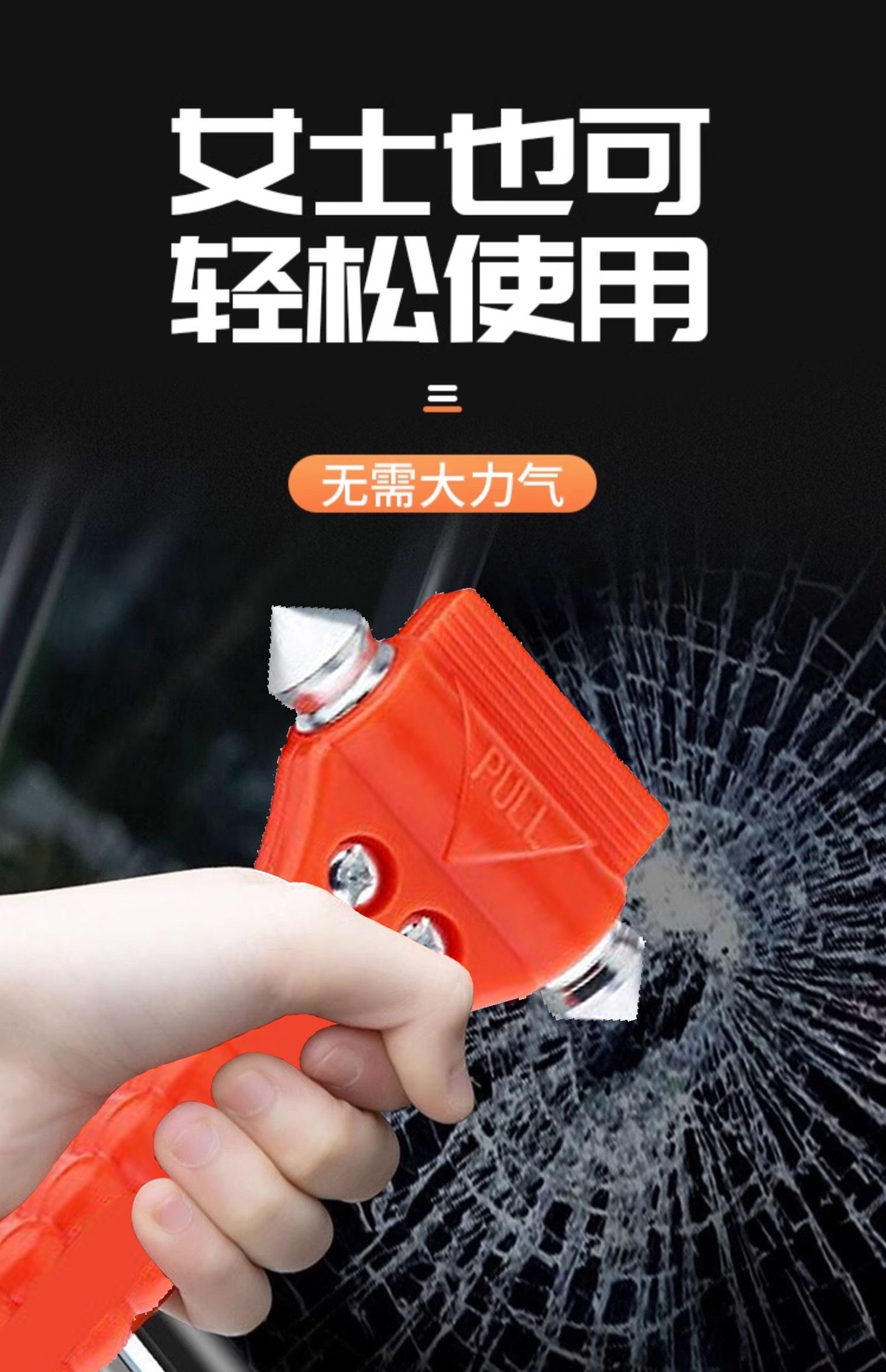 Автомобиль использует аварийный молоток для аварийного разбивания окна из закаленного стекла