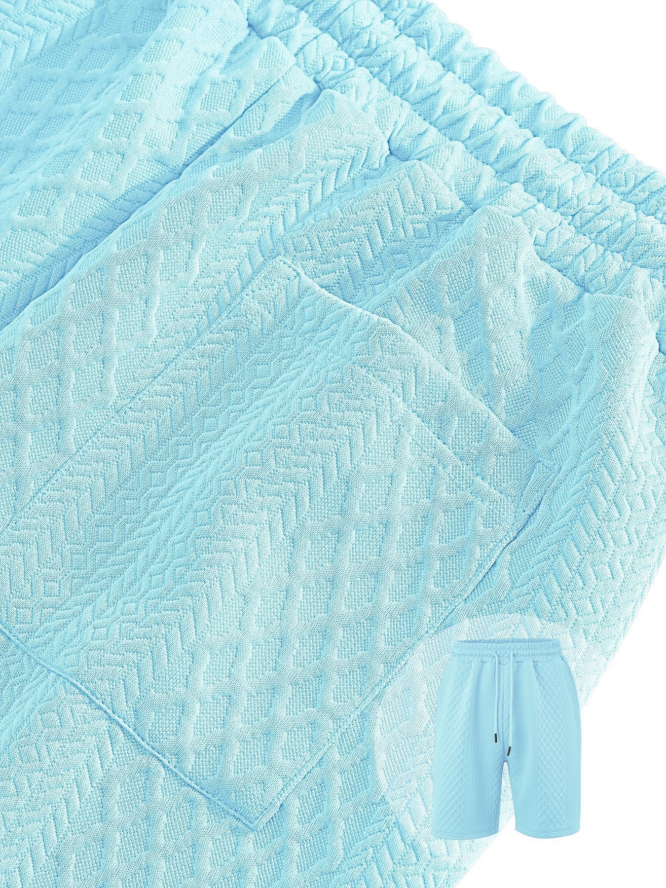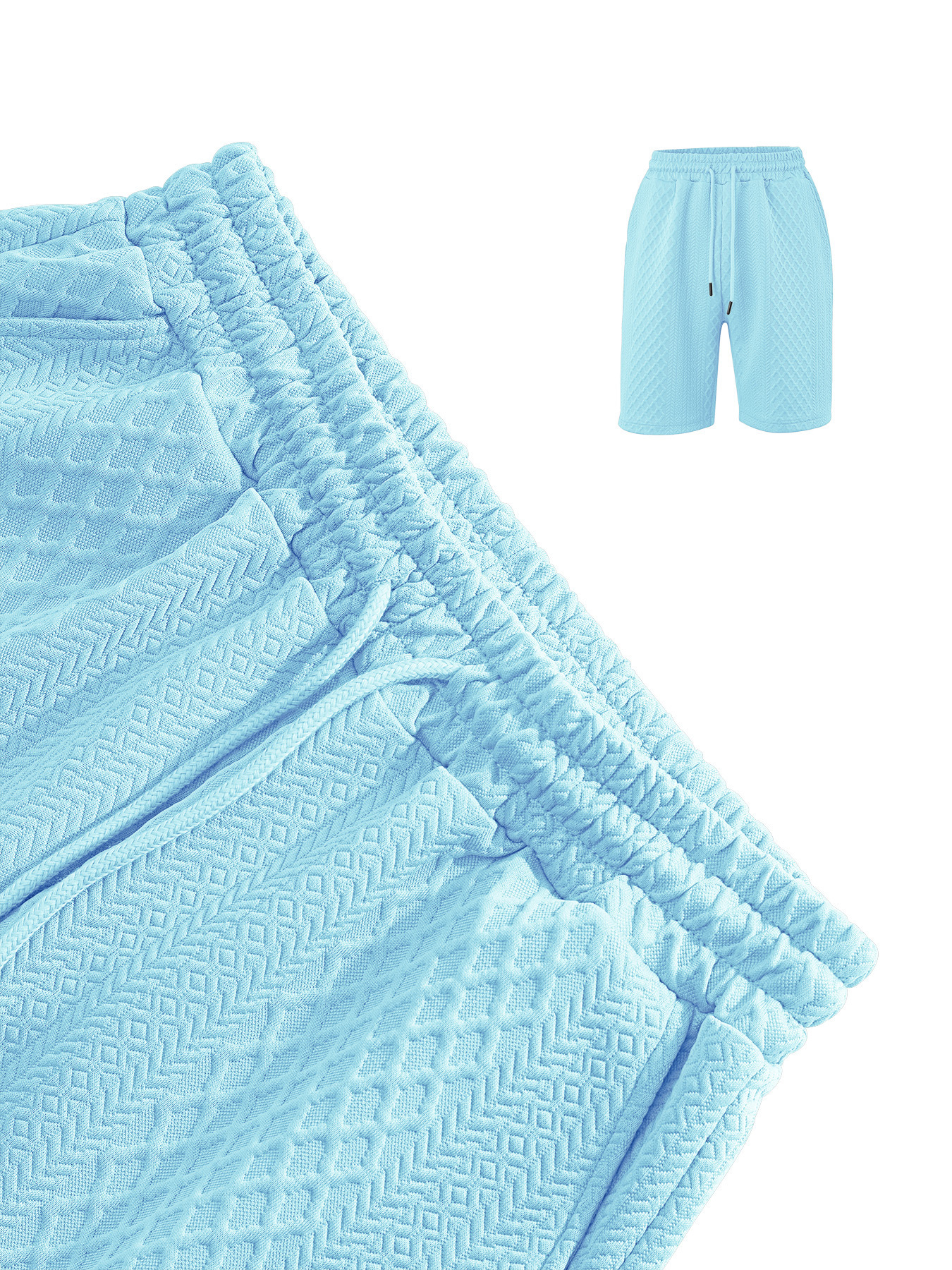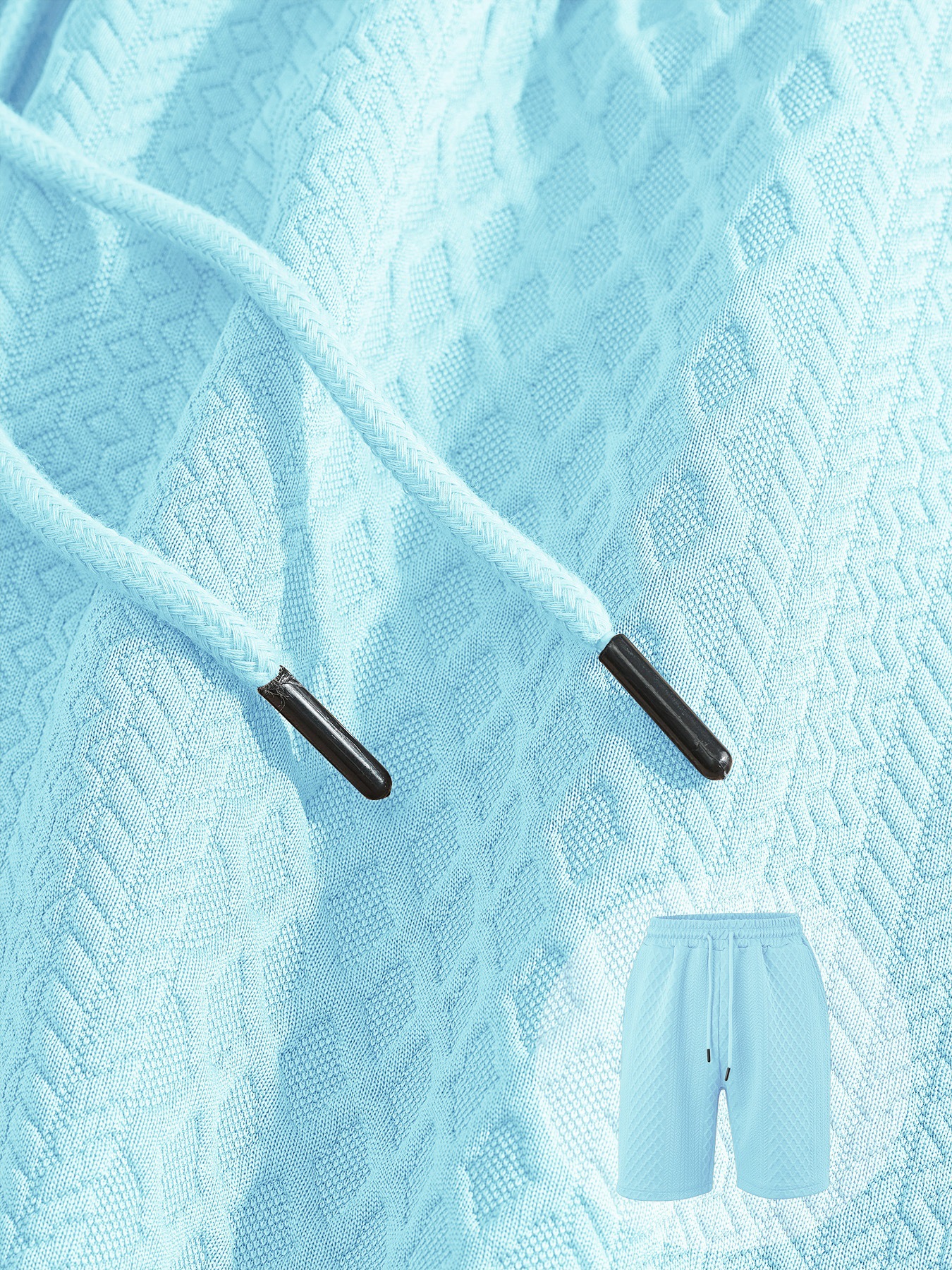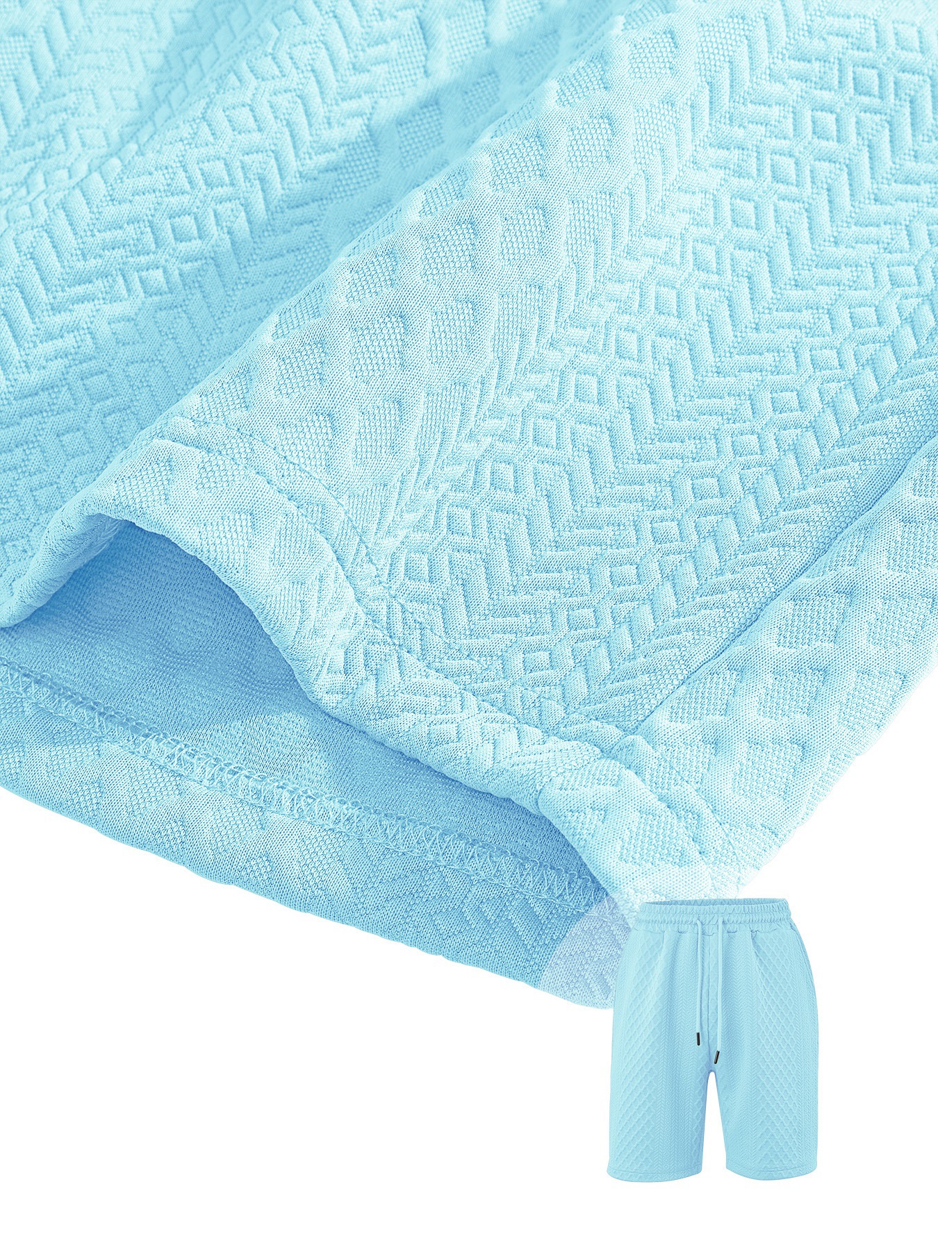 跨境男装夏季欧美新款提花布男式休闲运动薄款翻领POLO衫短袖套装