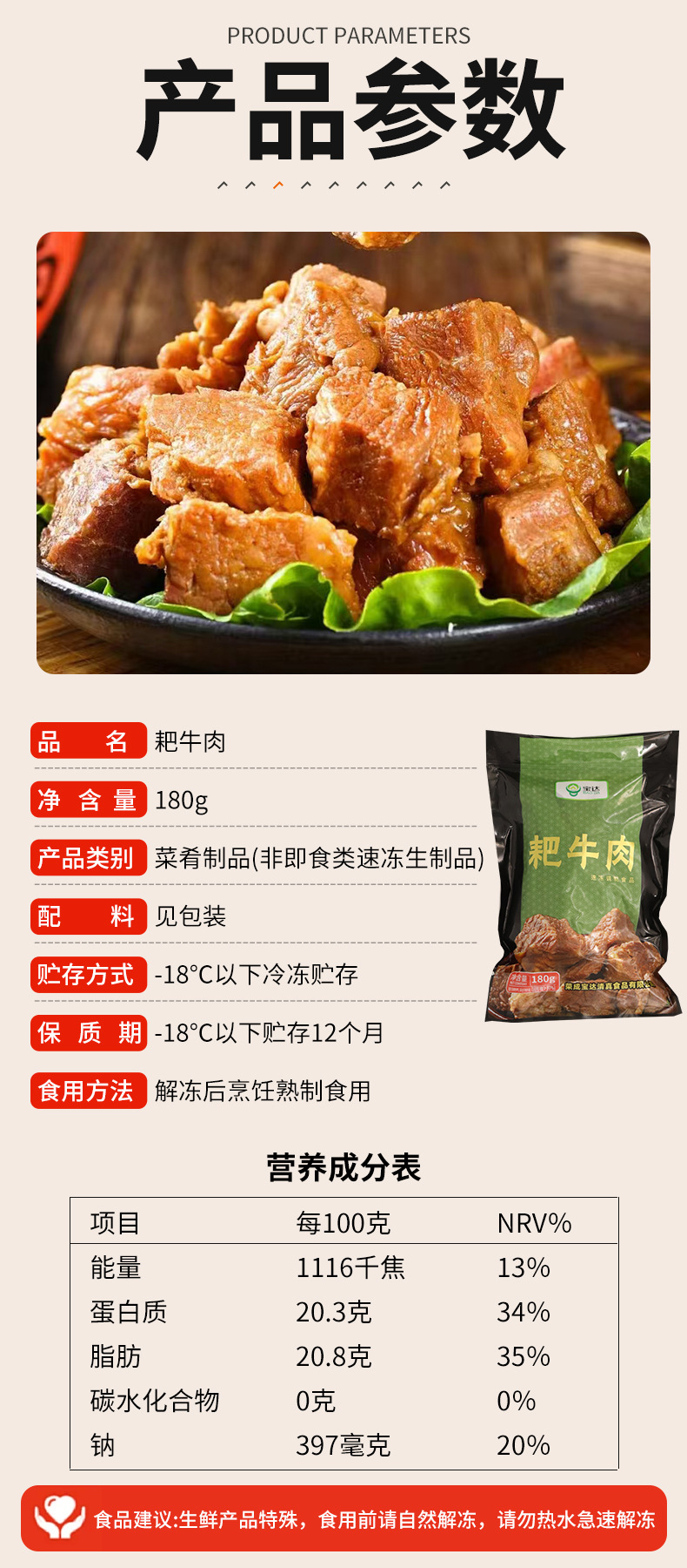 Беф-рибс Баода 180 г Коммерческие ломтики говяжьего брискета Ингредиенты для горячего горшка Чунцин Полуфабрикаты из тушеной говядины.