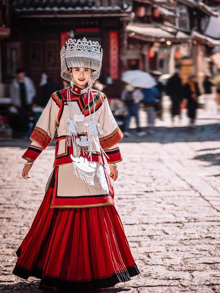 Мяо Цзян Девушка Розовый Liangshan Yi Костюм Костюм