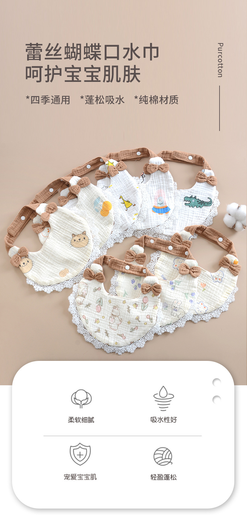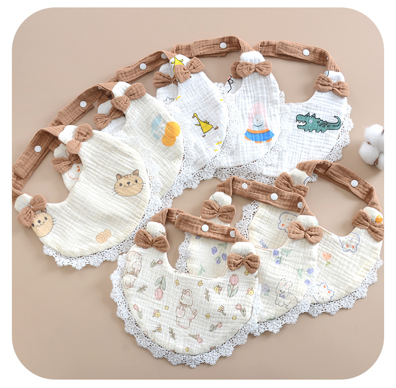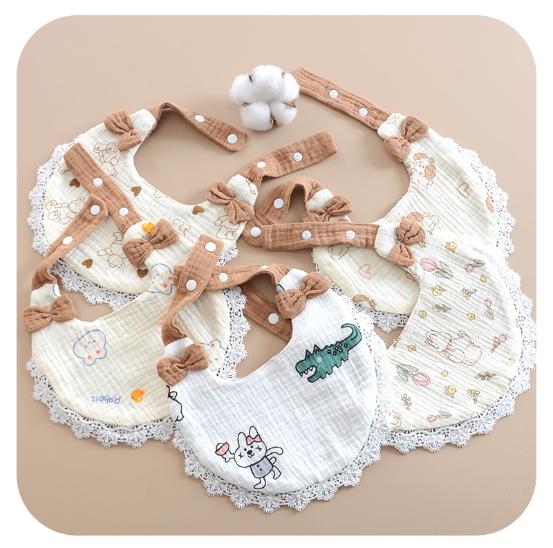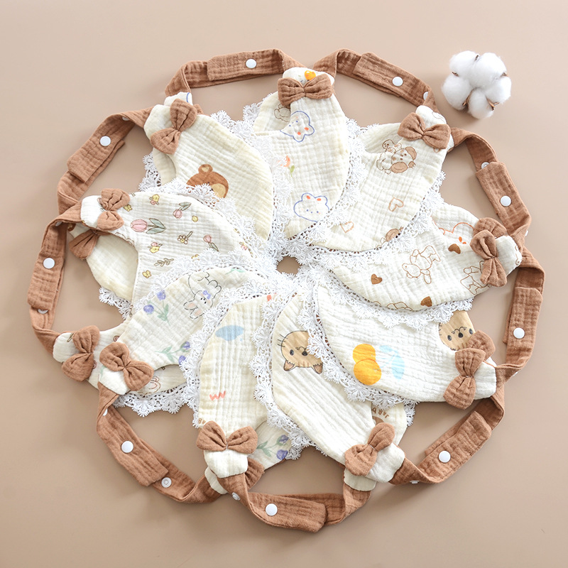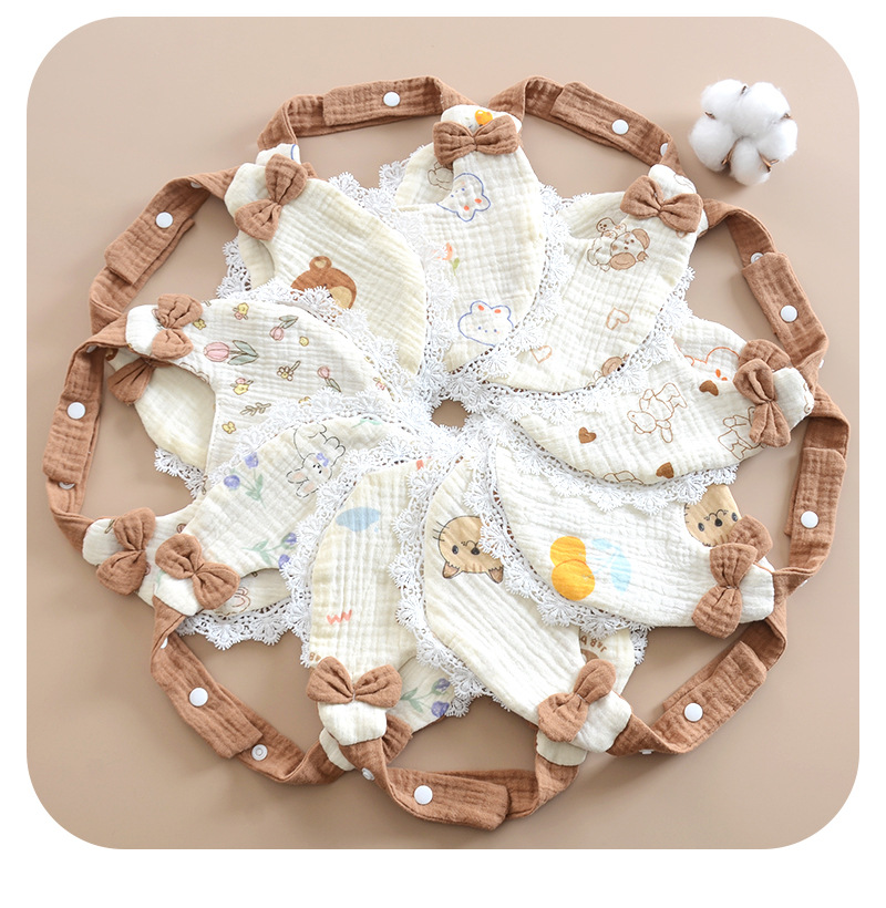 Новые детские шарфы изо рта s малышки кружевные банты милые нагрудники для новорожденных хлопчатобумажные марлевые нагрудники