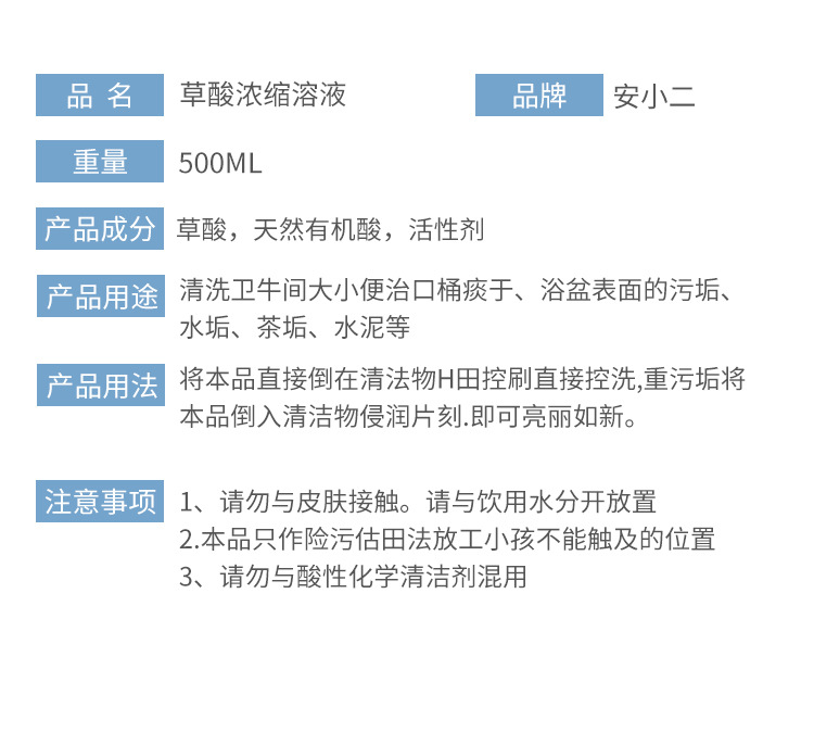 Очиститель концентрированного раствора щавелевой кислоты Плитка цементный пол отделка пятно сильный унитаз щелочной моче
