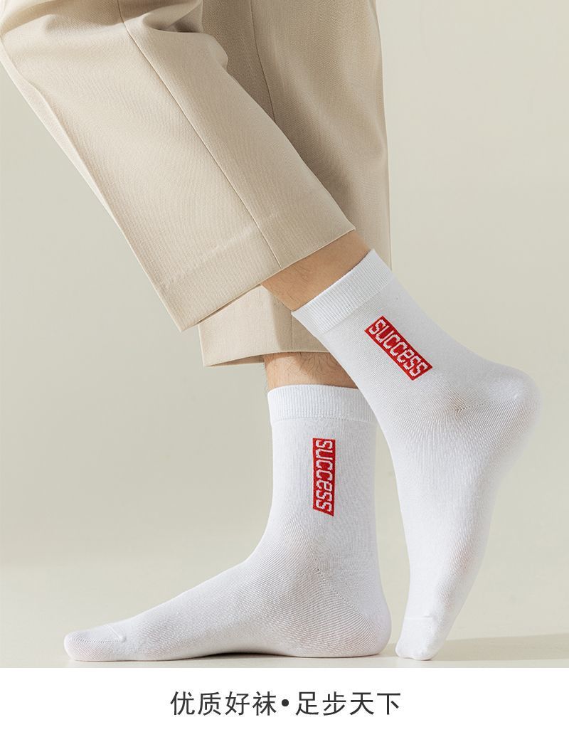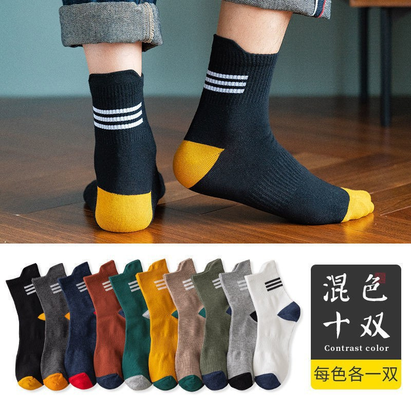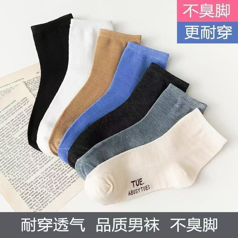 Однотонные носки для дропшиппинга, сотни стилей, распродажа, мужские носки средней длины для весны и лета, мужские носки, устойчивые к запаху, дышащие, спортивные длинные носки.
