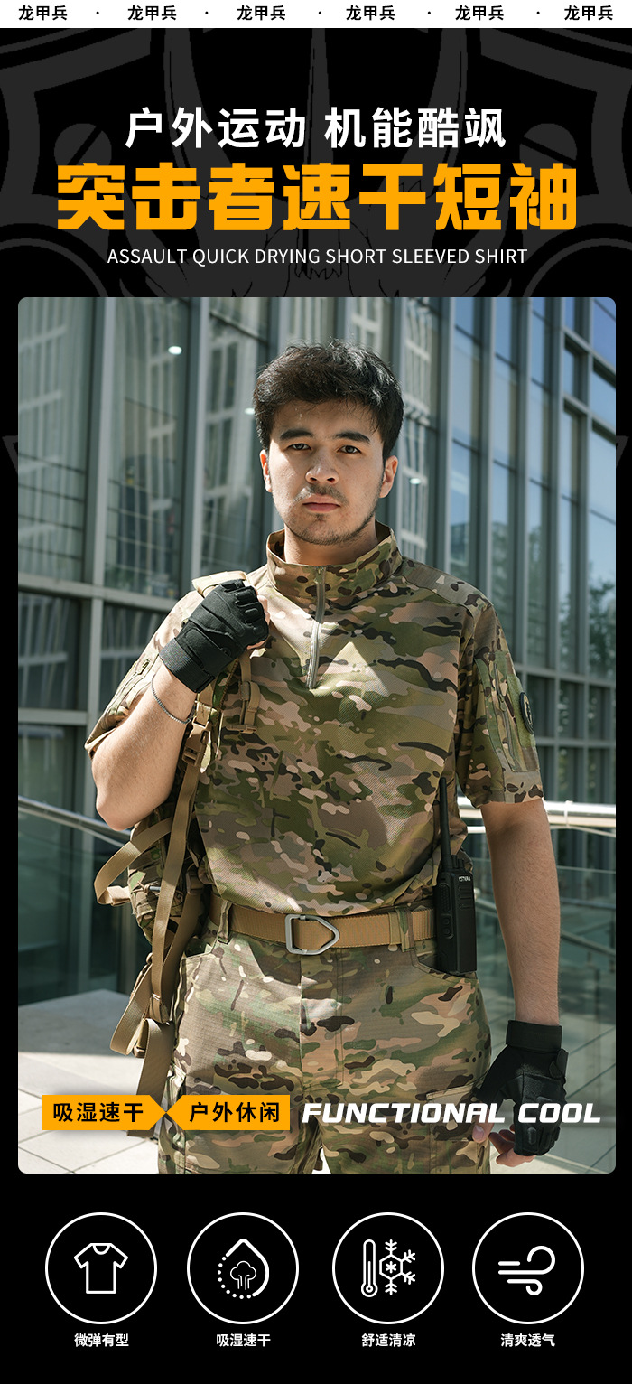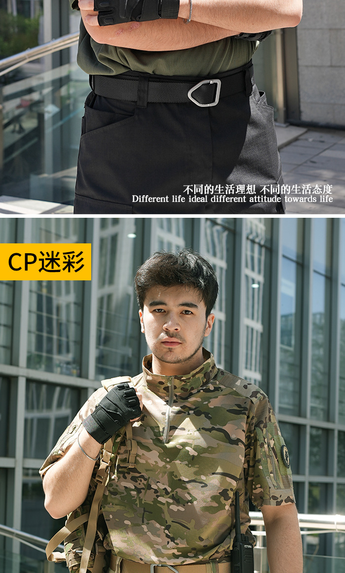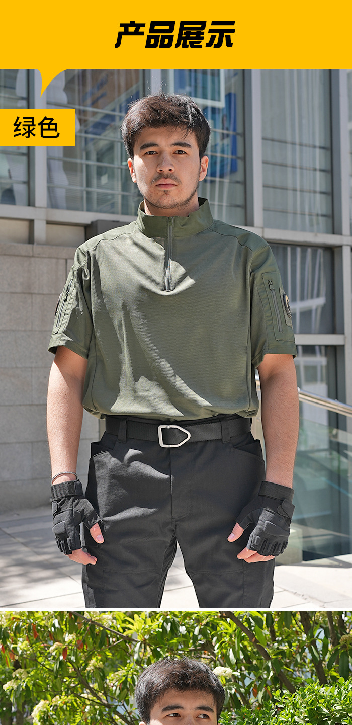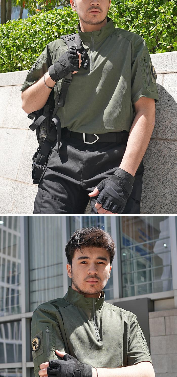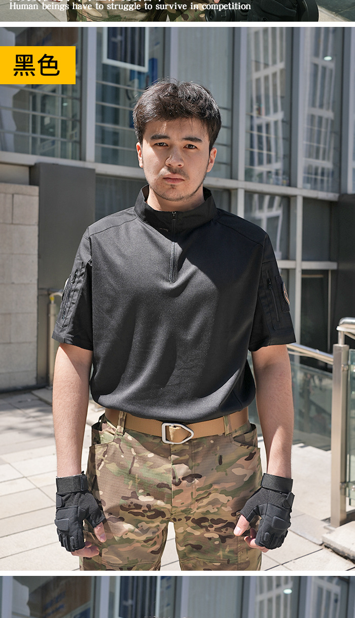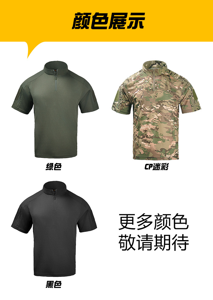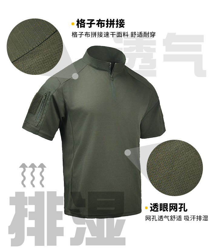 Мужская тактическая футболка с коротким рукавом, камуфляжная, дышащая, быстросохнущая, для летних военных тренировок, с воротником-стойкой, полурукав