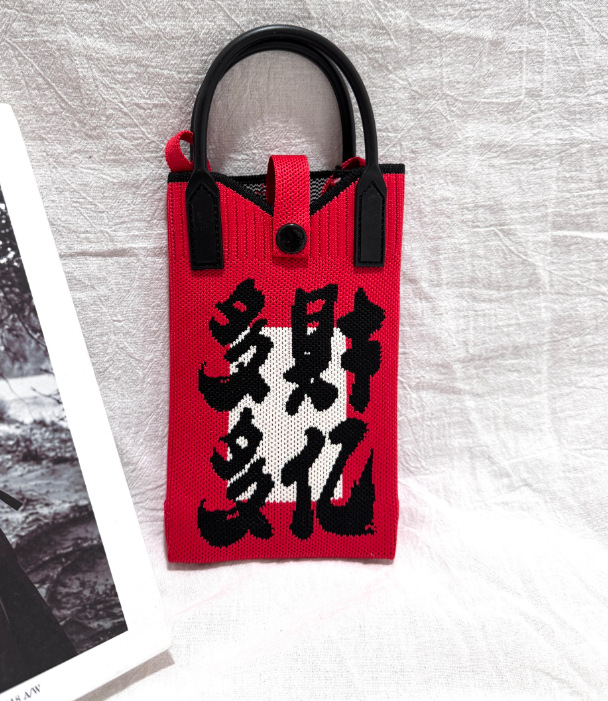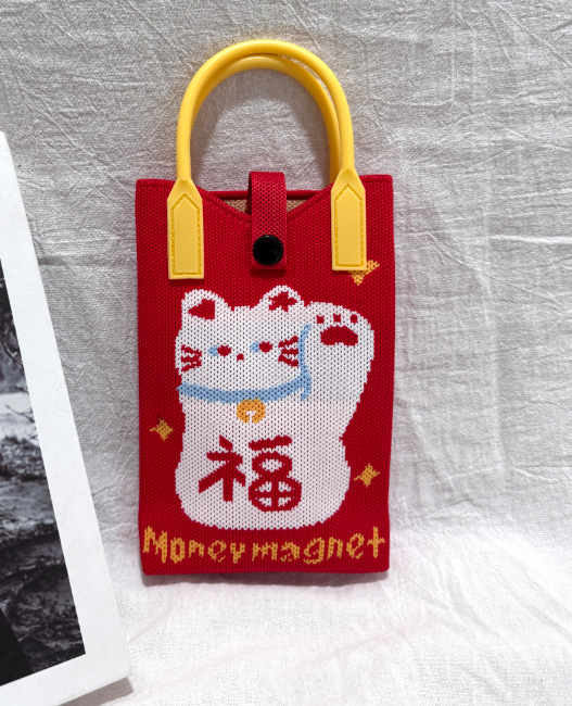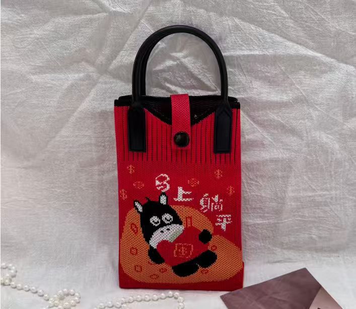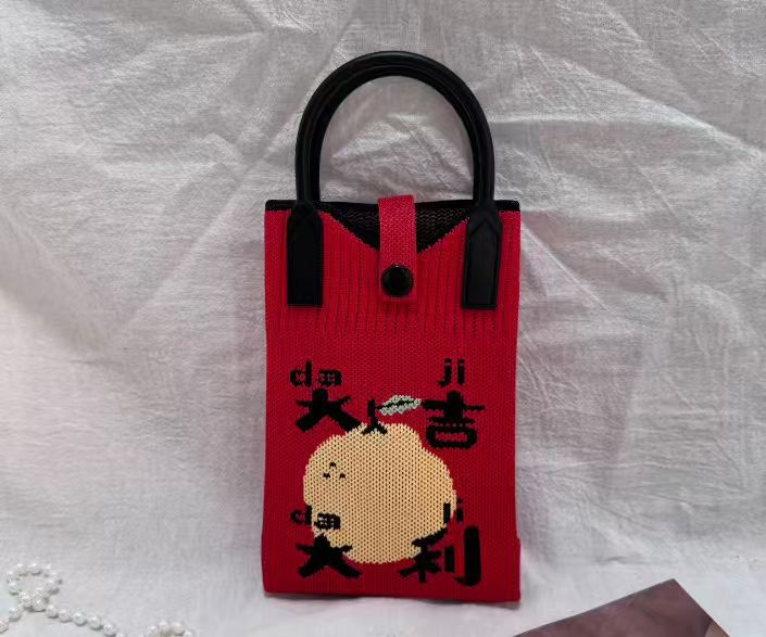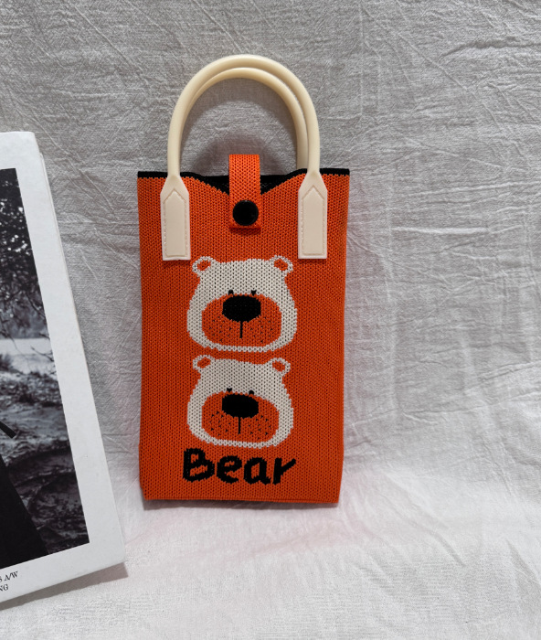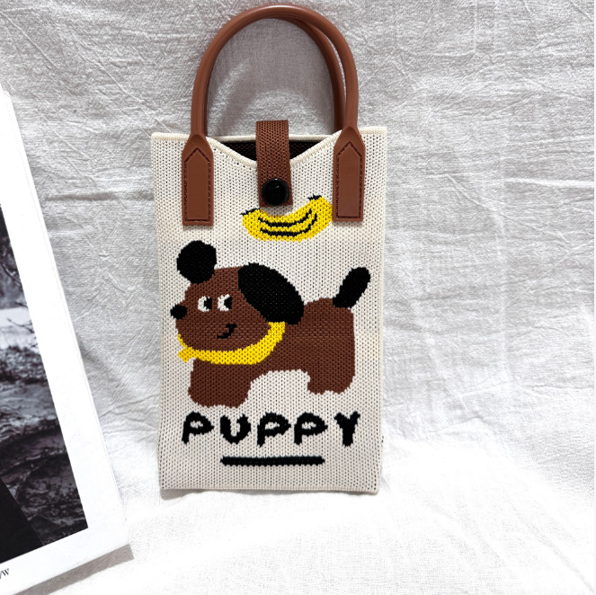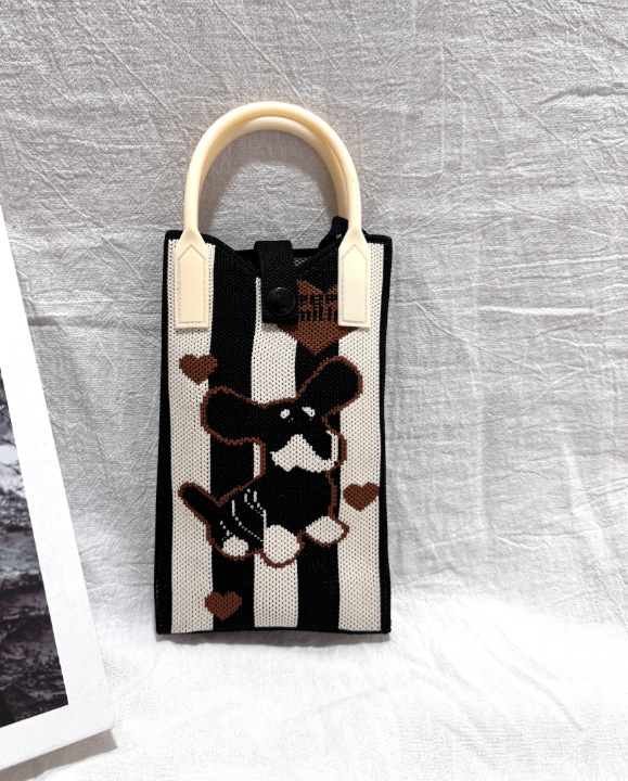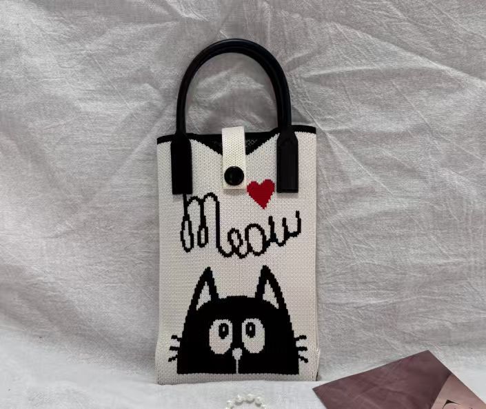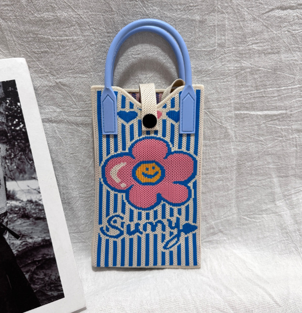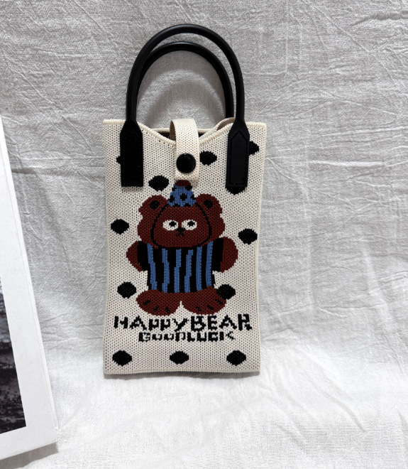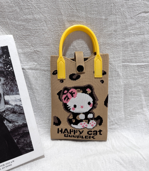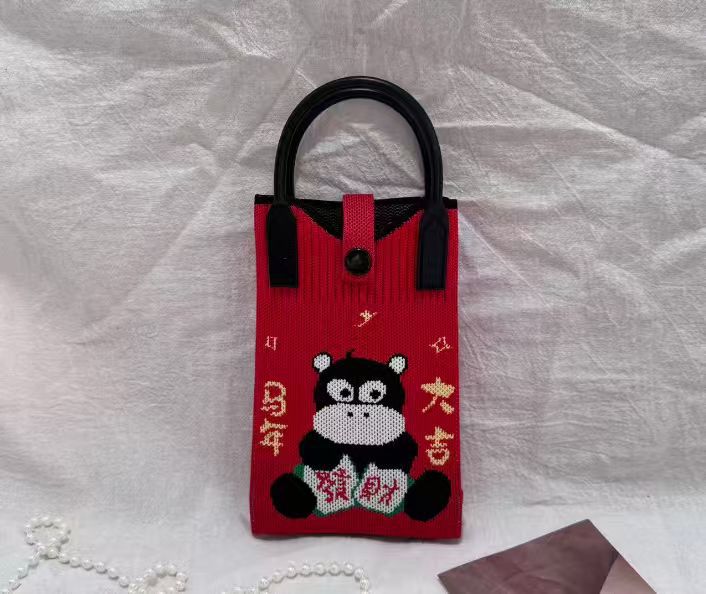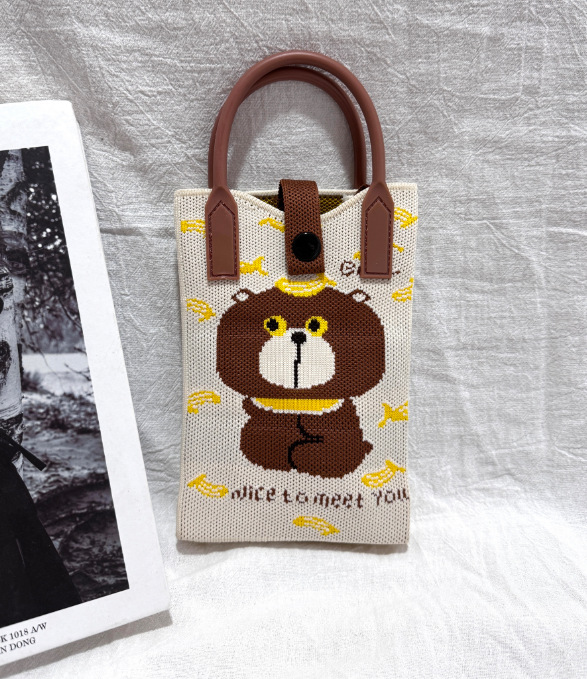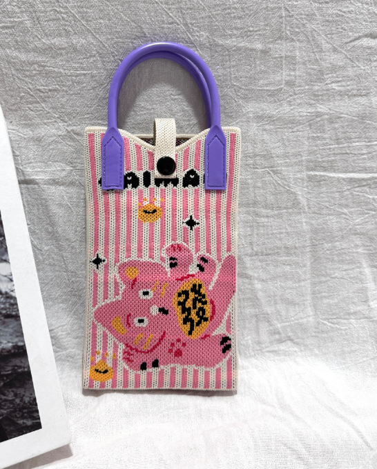 2025 новый мультфильм женский вязаный милый мобильный телефон сумка женский косой крест ручная маленькая портативная сумка на одно плечо