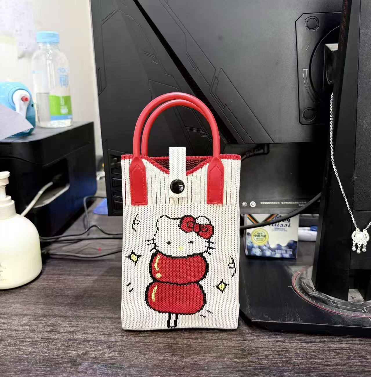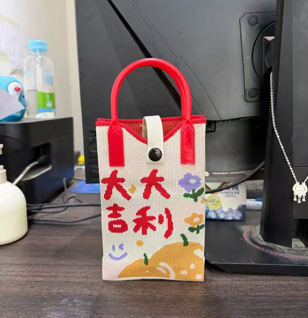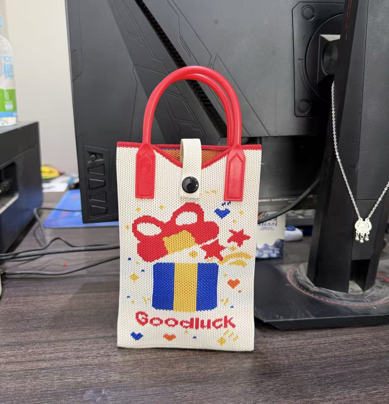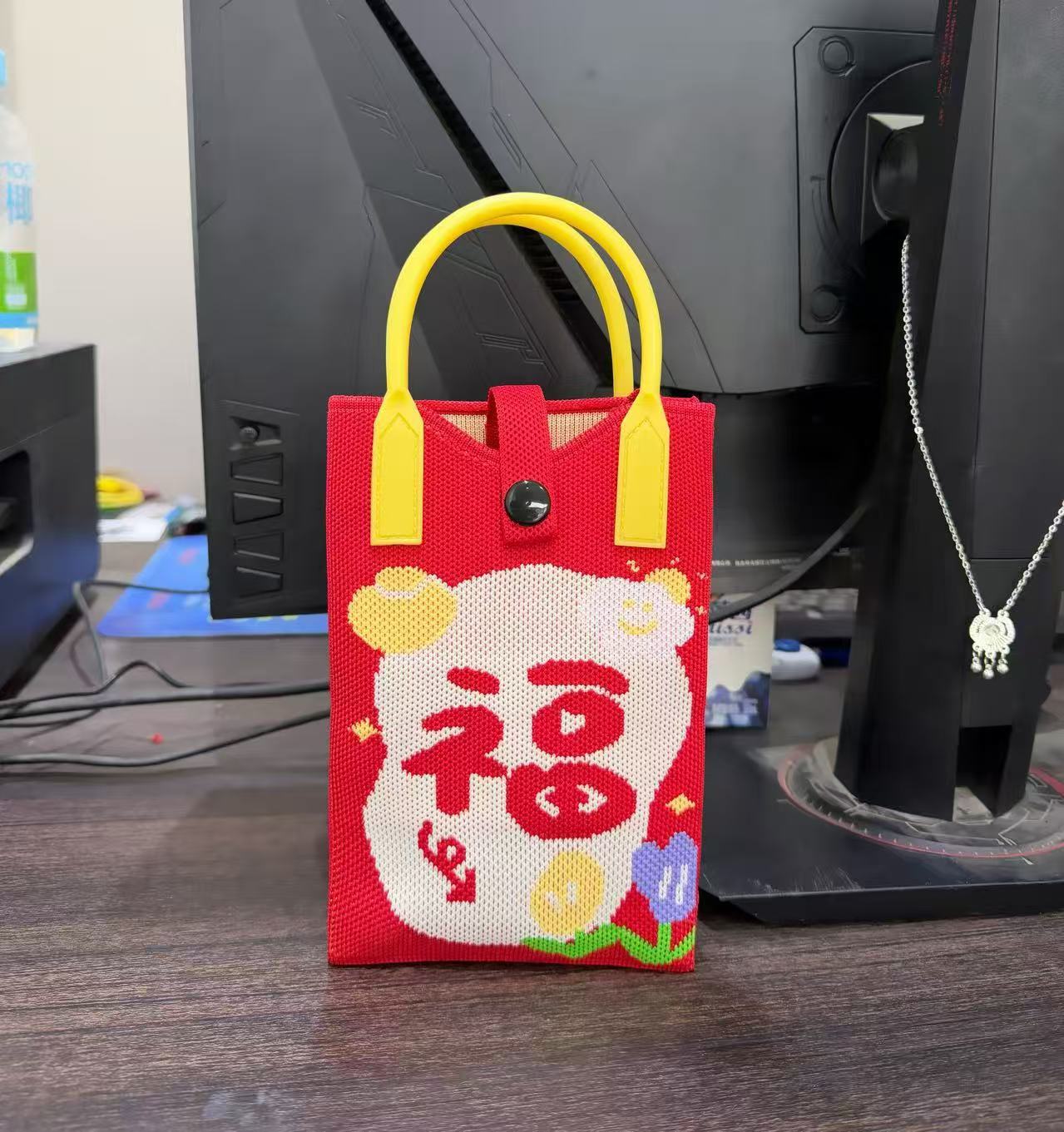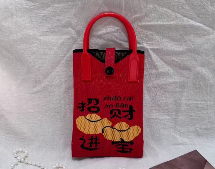 2025 новый мультфильм женский вязаный милый мобильный телефон сумка женский косой крест ручная маленькая портативная сумка на одно плечо