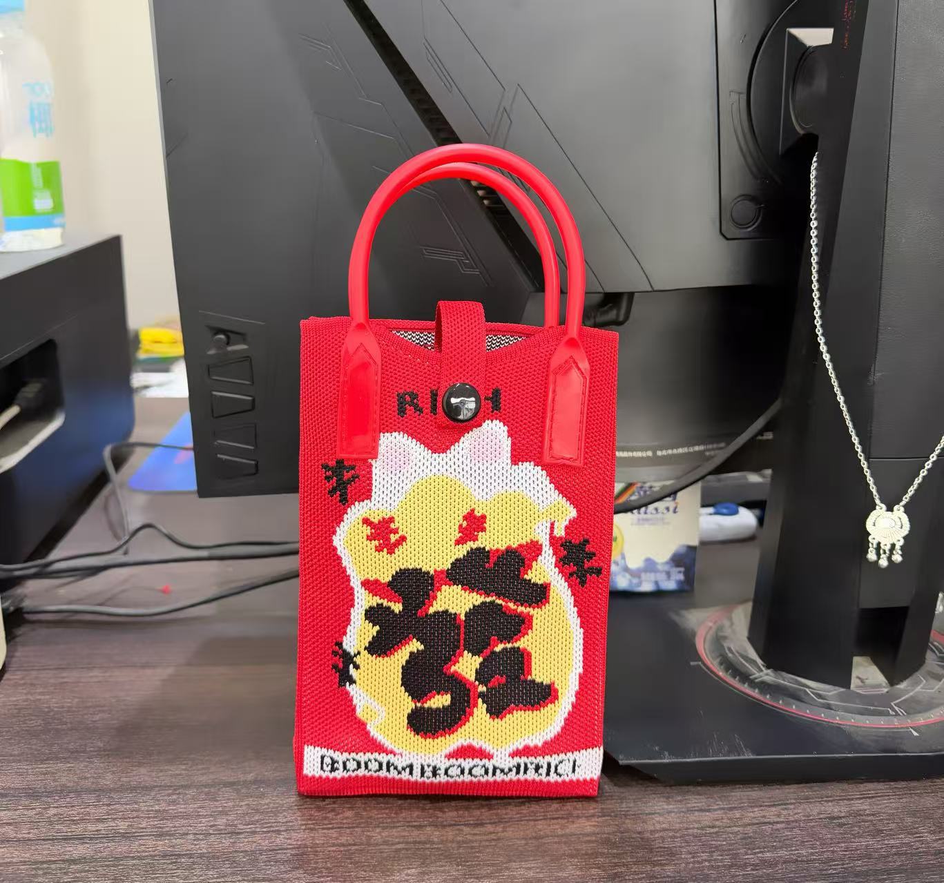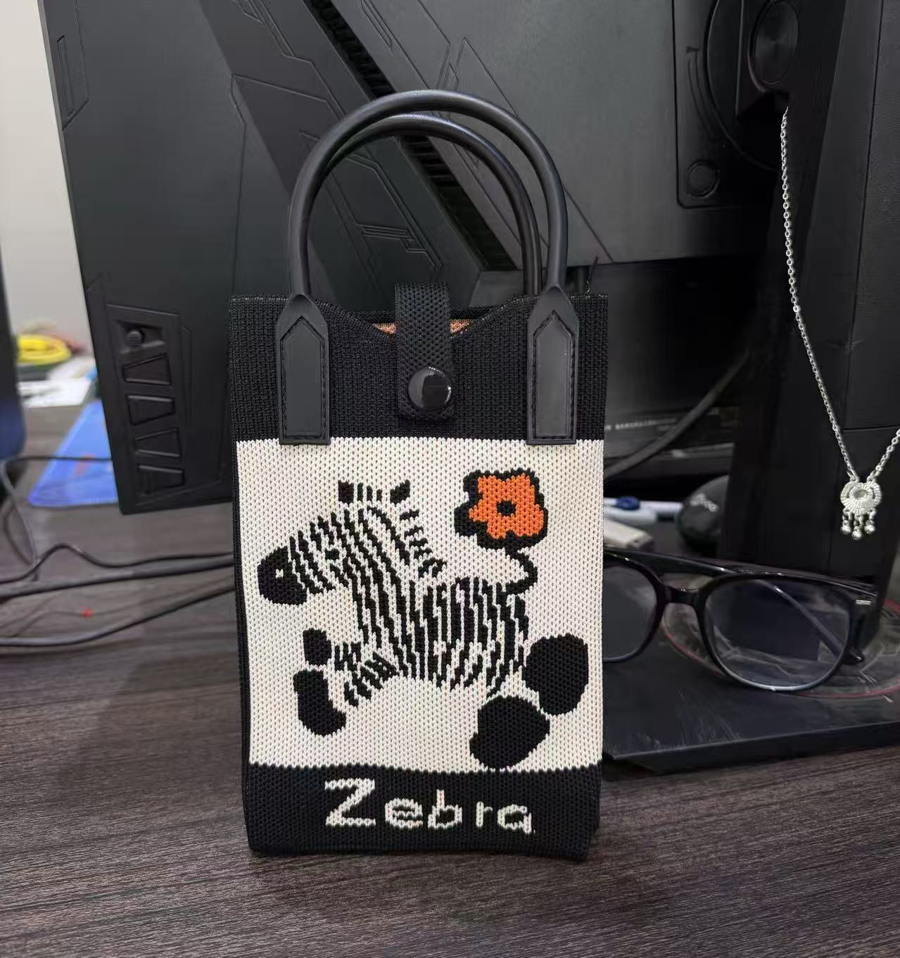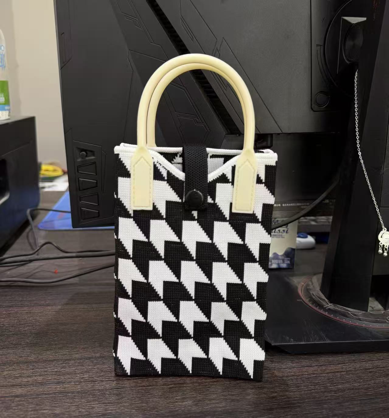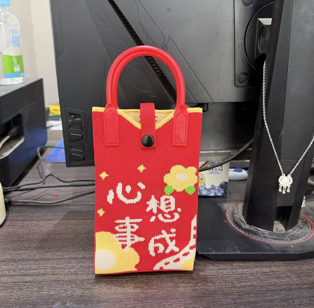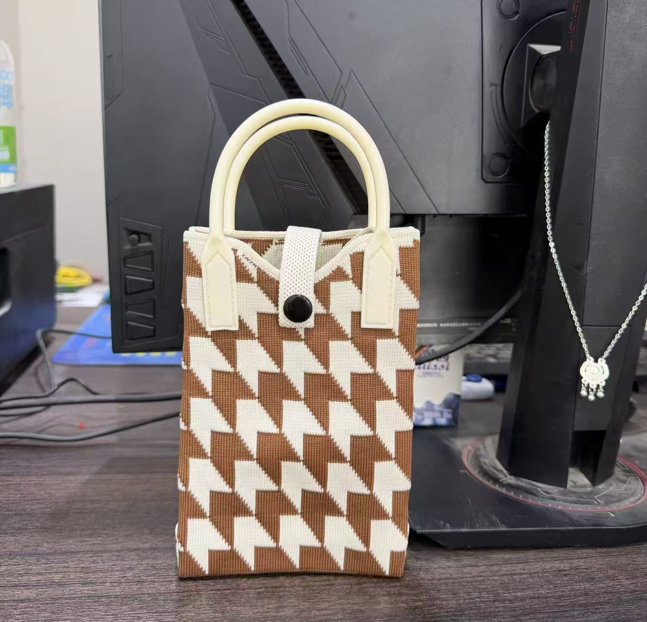 2025 новый мультфильм женский вязаный милый мобильный телефон сумка женский косой крест ручная маленькая портативная сумка на одно плечо