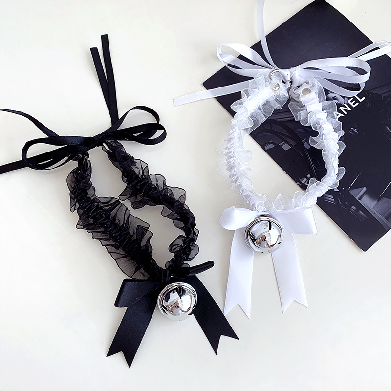 Ожерелье с кружевным бантом и колокольчиком, женское колье-чокер, аксессуары для шеи, ремешок на шею, цепочка на шею, модные кошачьи уши
