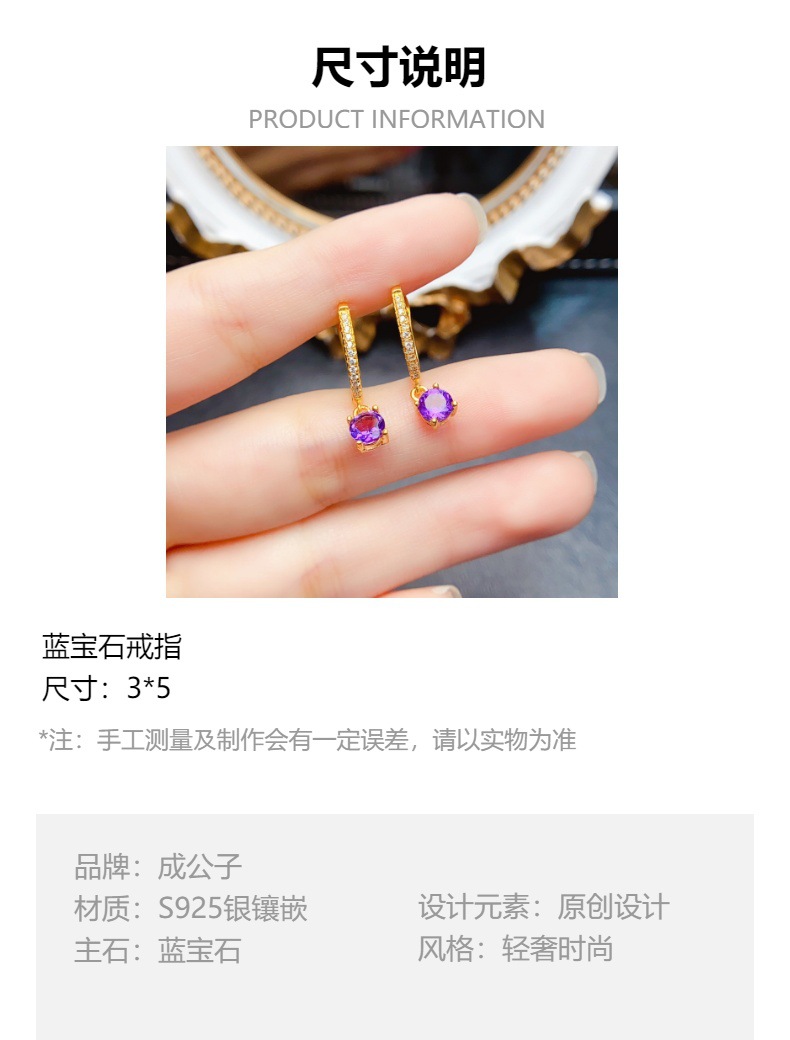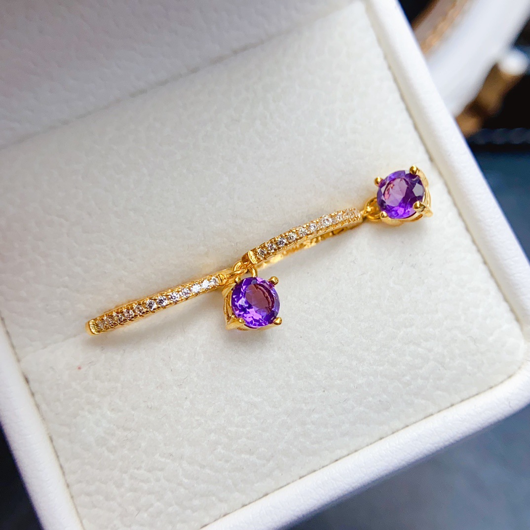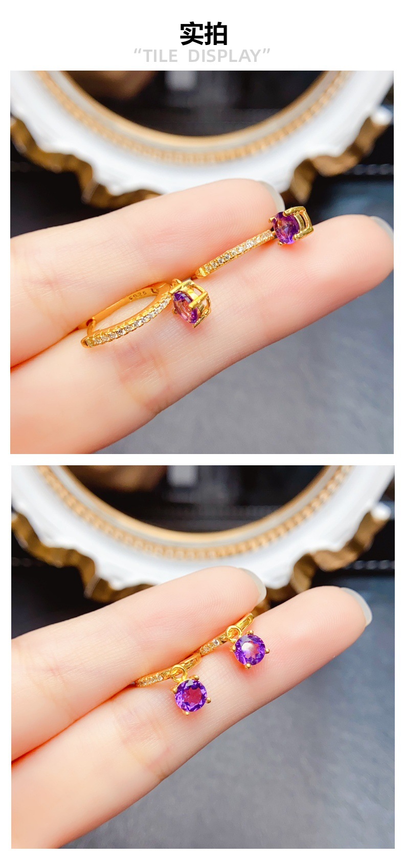 Заводская оптовая продажа натуральных аметистовых ушных гвоздей S925 серебряная инкрустация основного камня 5*5 горячих продаж в Европе и Америке
