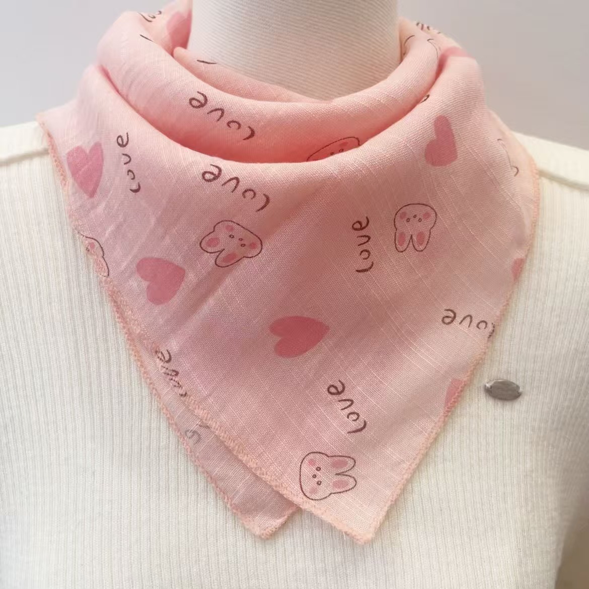 Квадратный шарф с маленьким цветком белый; Квадратный шарф с маленьким цветком розовый; Квадратный шарф звезда белый; Квадратный шарф звезда розовый; Квадратный шарф с цветком кролика; Квадратный шарф «Кролик-морковь» розового цвета; Белый квадратный шарф «Кролик любви»; Квадратный шарф «Кролик любовь» розовый; Квадратный шарф с маленьким динозавром; Квадратный шарф клубнично-белого цвета; Квадратный шарф клубнично-розового цвета; квадратный шарф с короной; Шарф с улыбающимся лицом белый; Шарф с улыбающимся лицом розовый; медведь звезда; медвежий квадратный шарф
