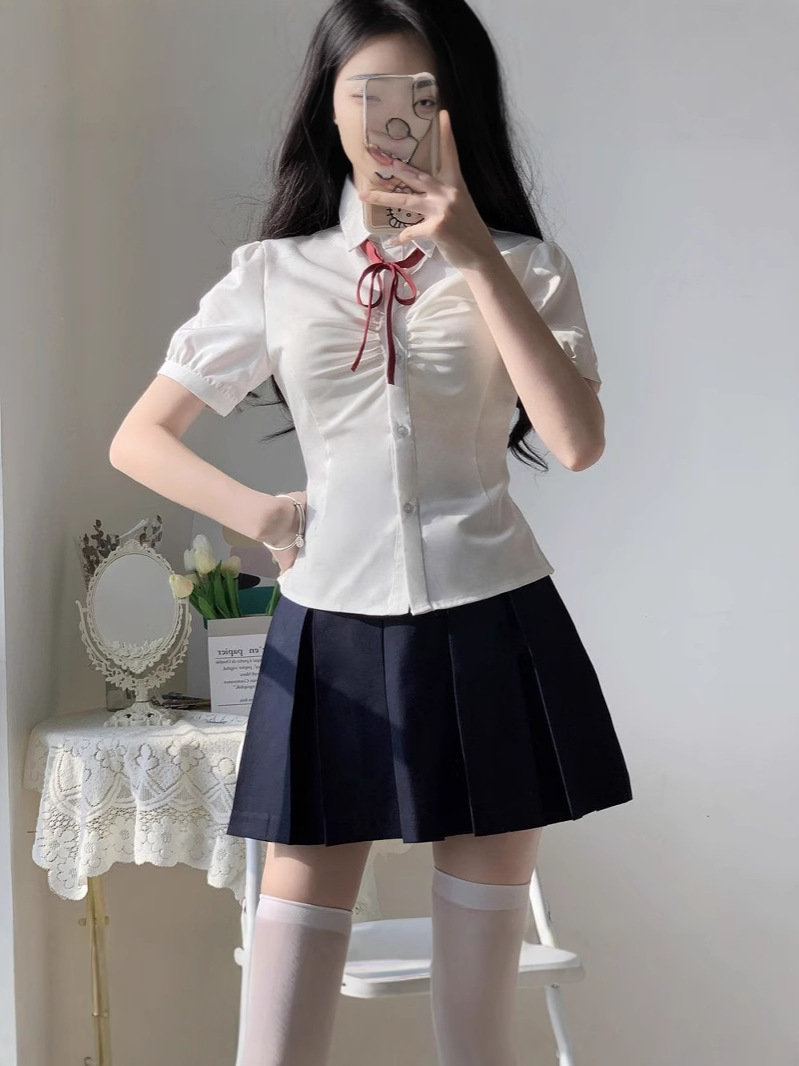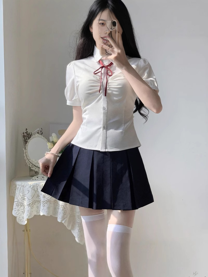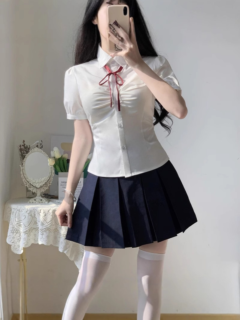 Оптовая оптовая рубашка с талией топ женский короткий рукав оригинальный летний школьный стиль белая рубашка jk униформа костюм женский