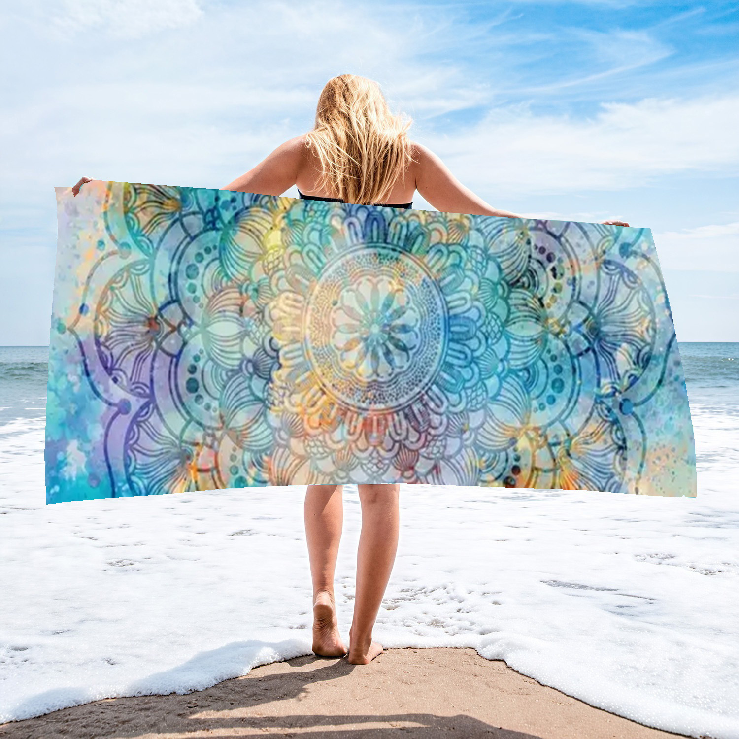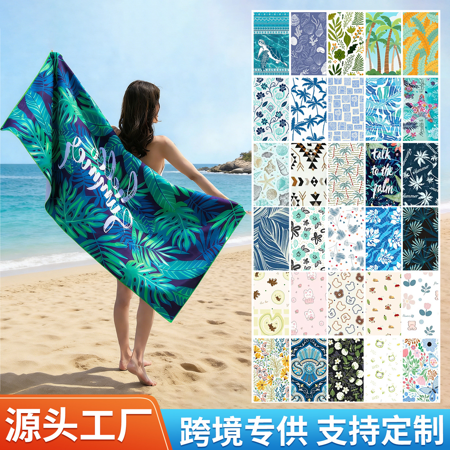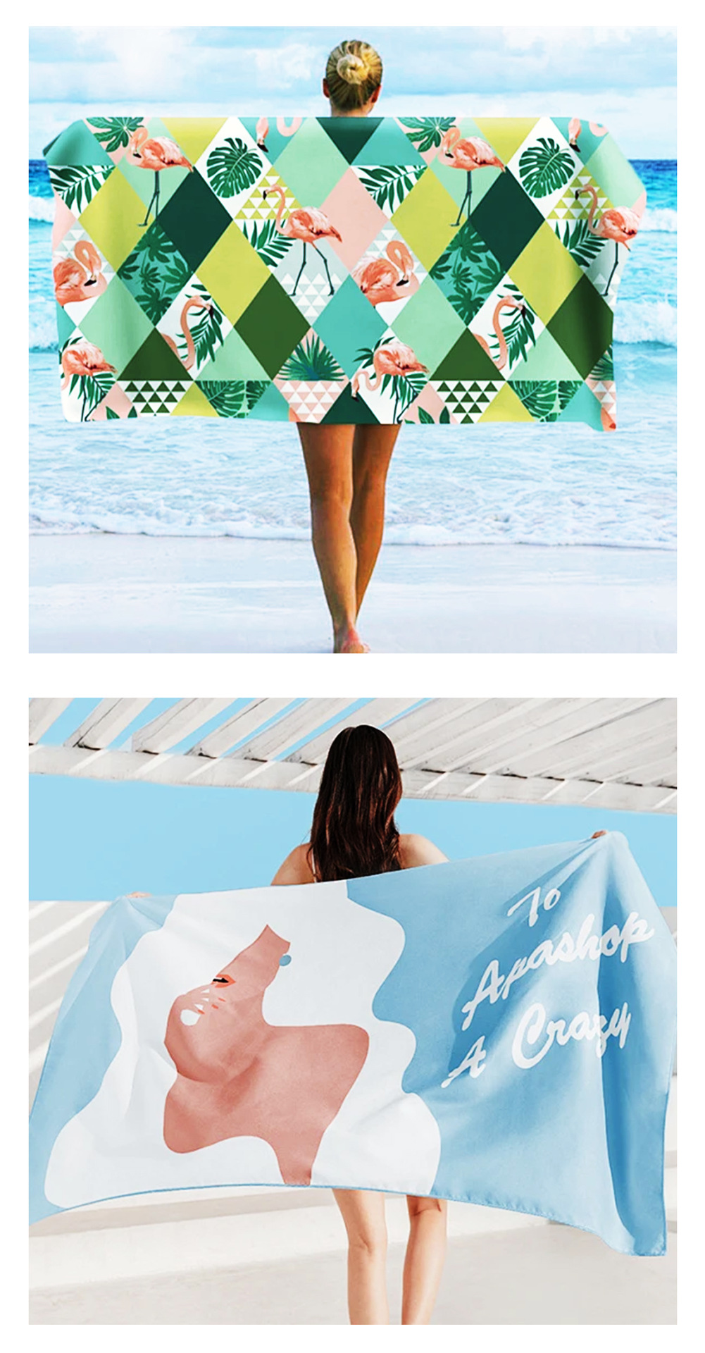 Пляжное полотенце на заказ, из ультратонкого волокна, впитывающее влагу, двустороннее бархатное банное полотенце для плавания на море, полноразмерное полотенце-плед с цифровой печатью.