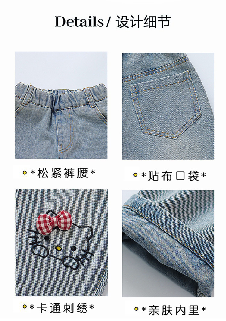 Джинсы для девочек Весна и Осень 2025 Новый средний ребенок свободная корейская версия малышки повседневная KTCat модные брюки