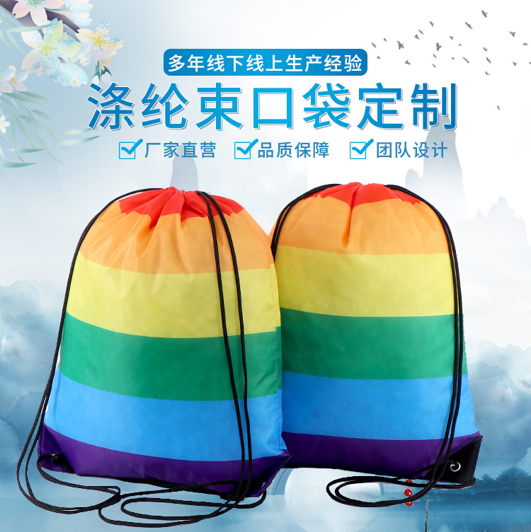 210D涤纶束口袋 双肩抽绳背包 彩色涤纶束口袋