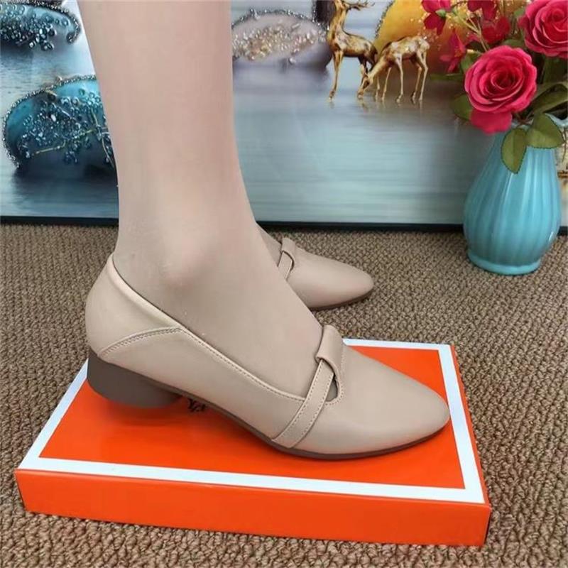 Новые остроконечные туфли на невысоком каблуке модные одиночные туфли удобные мягкие подошвы темпераментные дикие рабочие туфли на низком каблуке светлая мама кожаные туфли