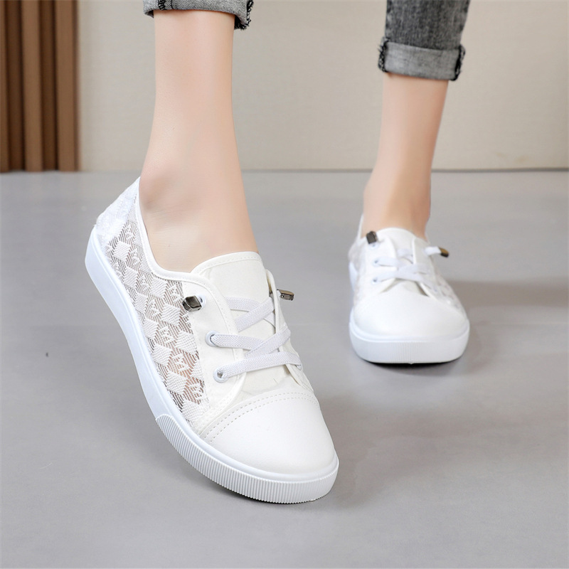 Женские сетчатые кроссовки больших размеров, новинка весна-лето 2026, традиционные пекинские тканевые туфли, дышащие кроссовки для студентов, повседневные белые туфли.