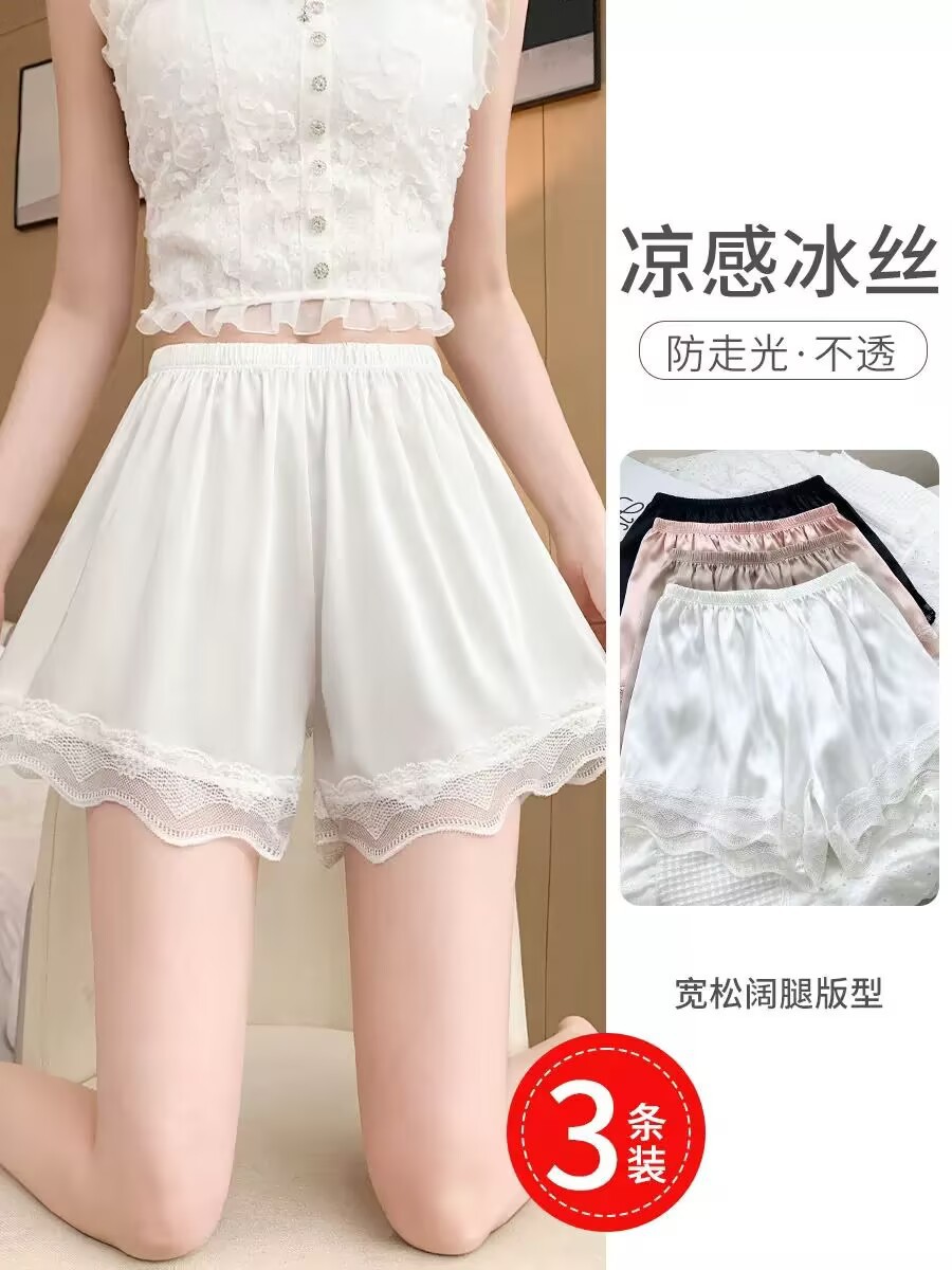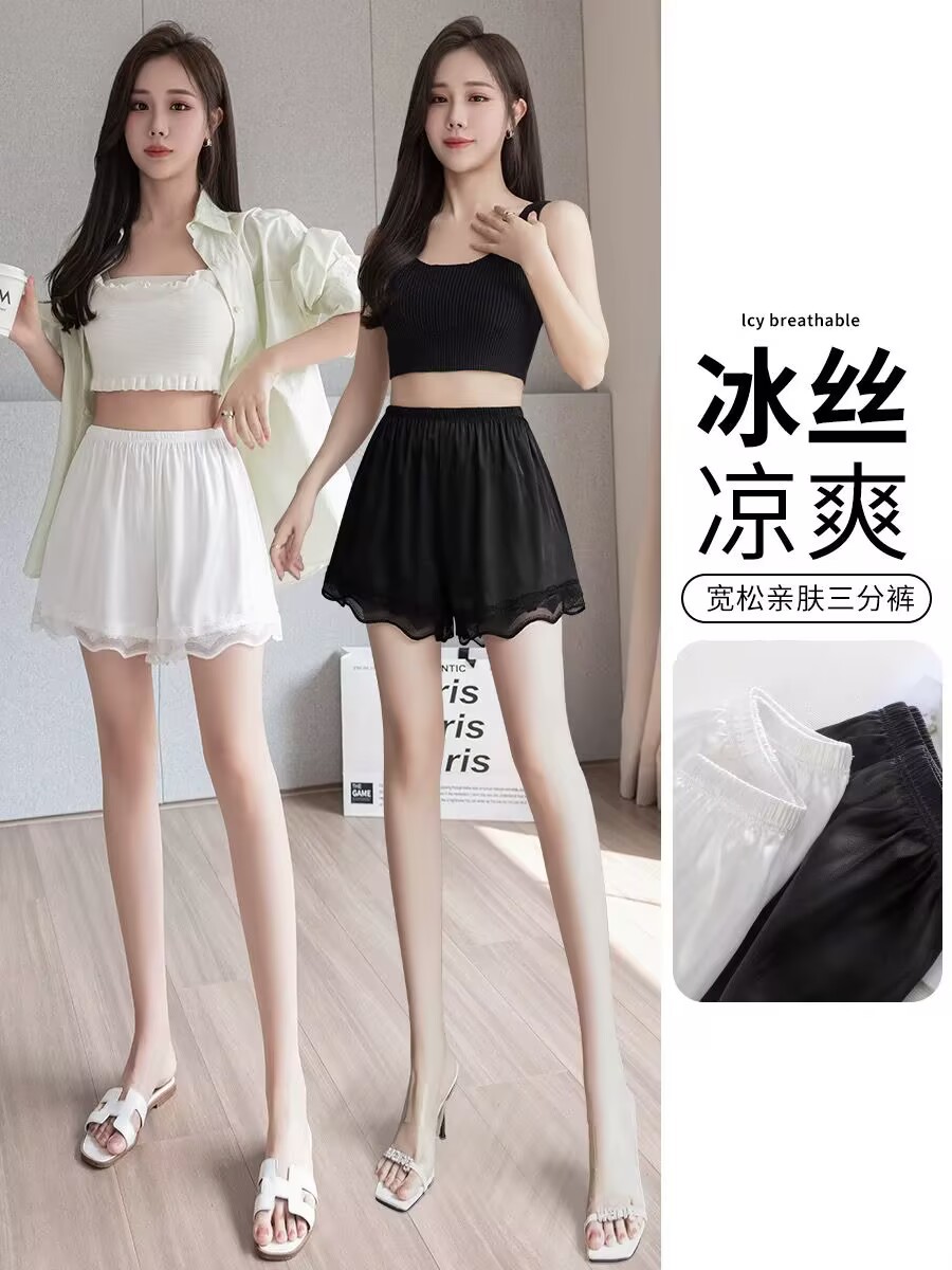Защитные брюки из ледяного шелка для женщин летом, тонкая верхняя одежда, свободные дышащие кружевные домашние шорты большого размера без скручивания