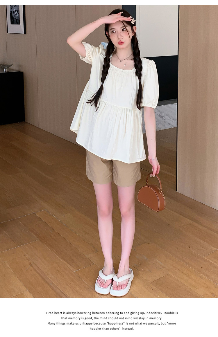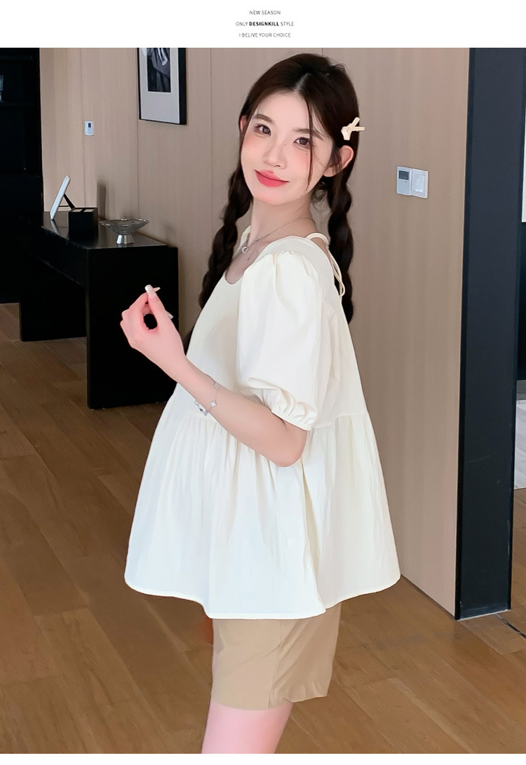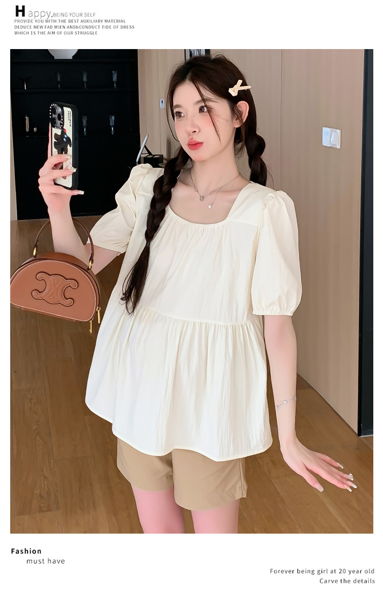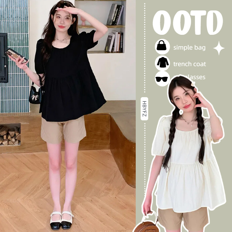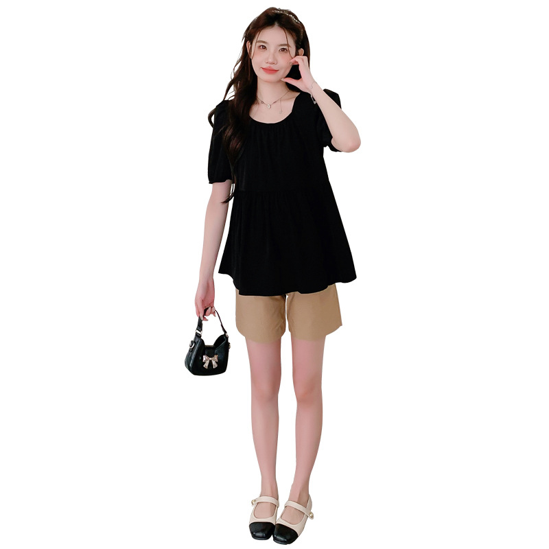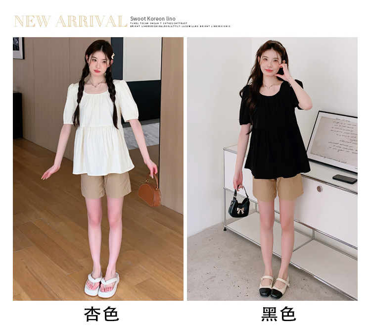 Реальные фото: комплект для беременных в наличии, лето 2026, шифоновый топ с квадратным вырезом + шорты, комплект из двух предметов, свободный крой для женщин.