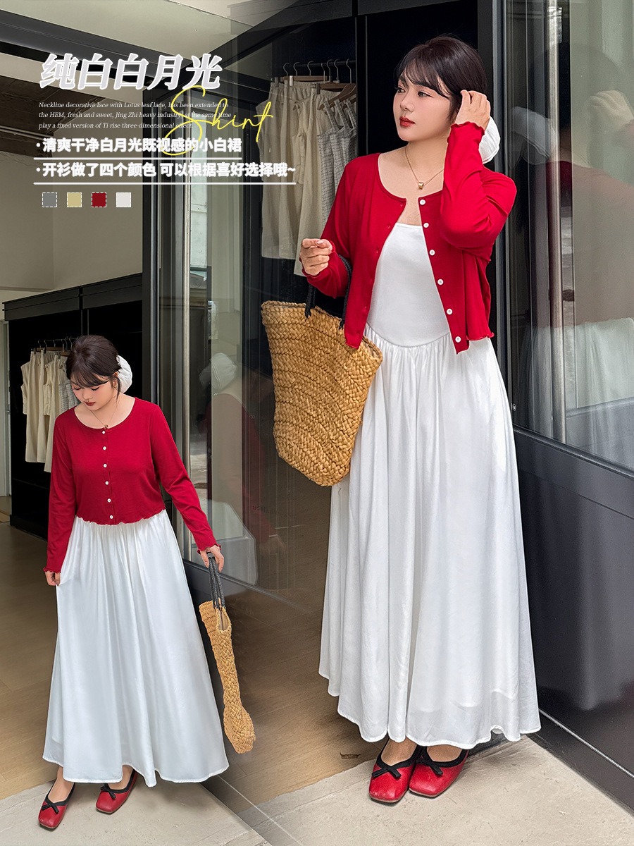 Женский кардиган больших размеров Eno, юбка на подтяжках, костюм 2025, осенний новый милый белый лунный свет, комплект из двух предметов 132128