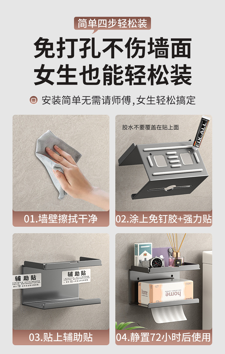 Производитель оптовая продажа туалетной комнаты без перфорации бумажных полотенец туалетная стойка бумажных полотенец ванная комната настенная коробка рулонной бумаги держатель мобильного телефона Нет