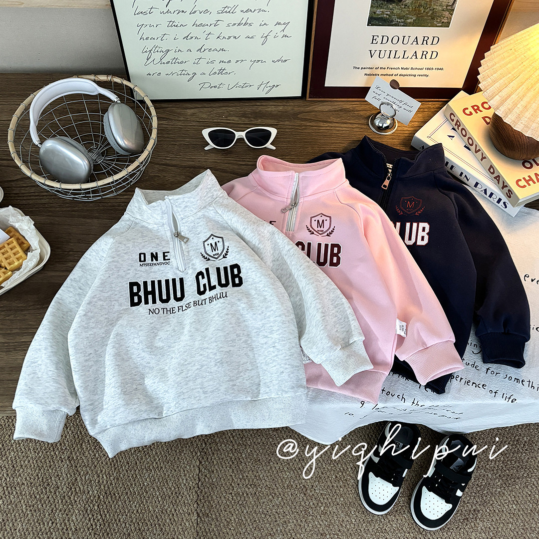 Детские толстовки весенне-осенние новые топы для мальчиков и девочек, спортивные пуловеры среднего и большого размера для детей, воротник-стойка, детская одежда с длинными рукавами.