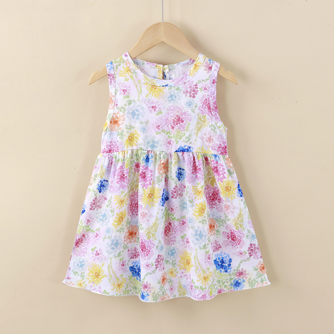 Платье для девочек из хлопка и шелка, летнее новое стильное детское платье принцессы среднего и большого размера, платье-жилет, платье в корейском стиле для девочек, детская одежда оптом