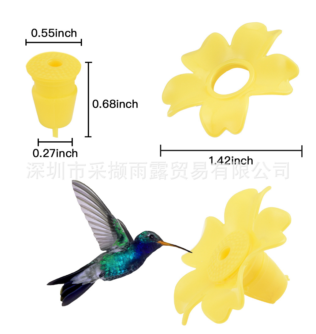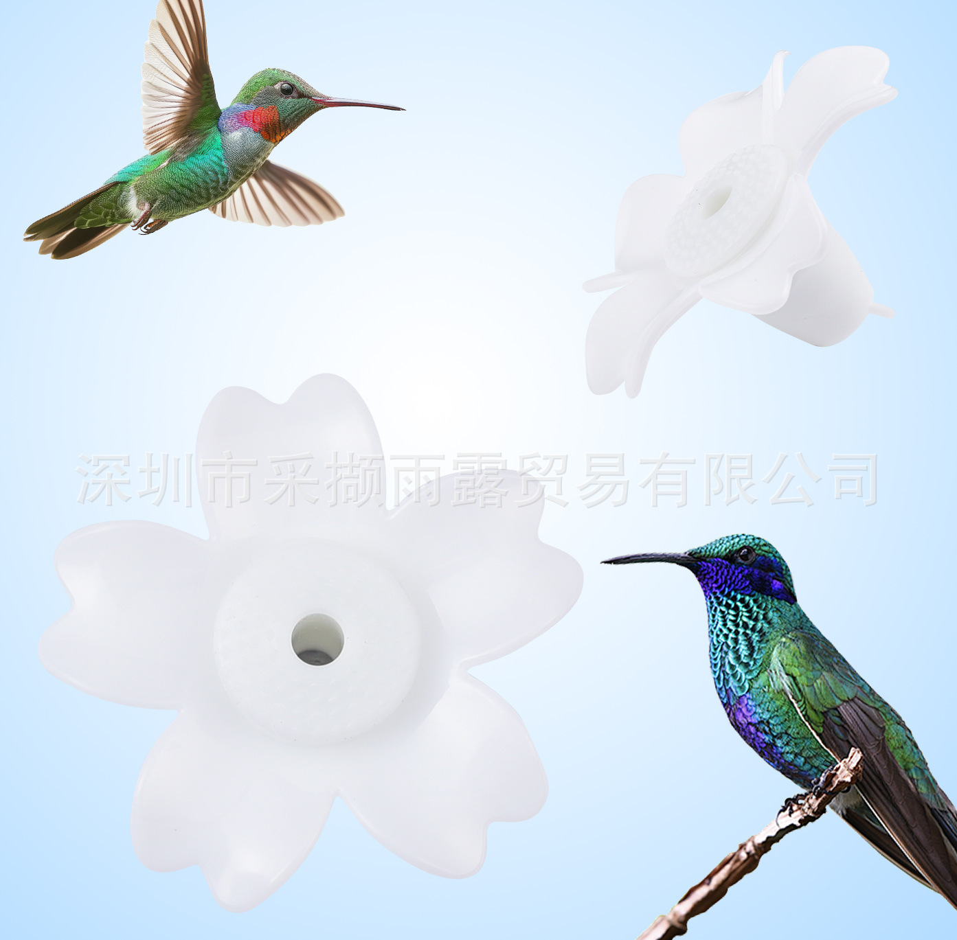 产品材质PP 花芯直径1.0CM 单个重量1.7克 产品用途:可以拿花朵自制蜂鸟喂食器(用矿泉水瓶子钻个孔把花朵装进去 放上蜂蜜或糖水即可喂食) 也可以当做蜂鸟喂食器上面的配件