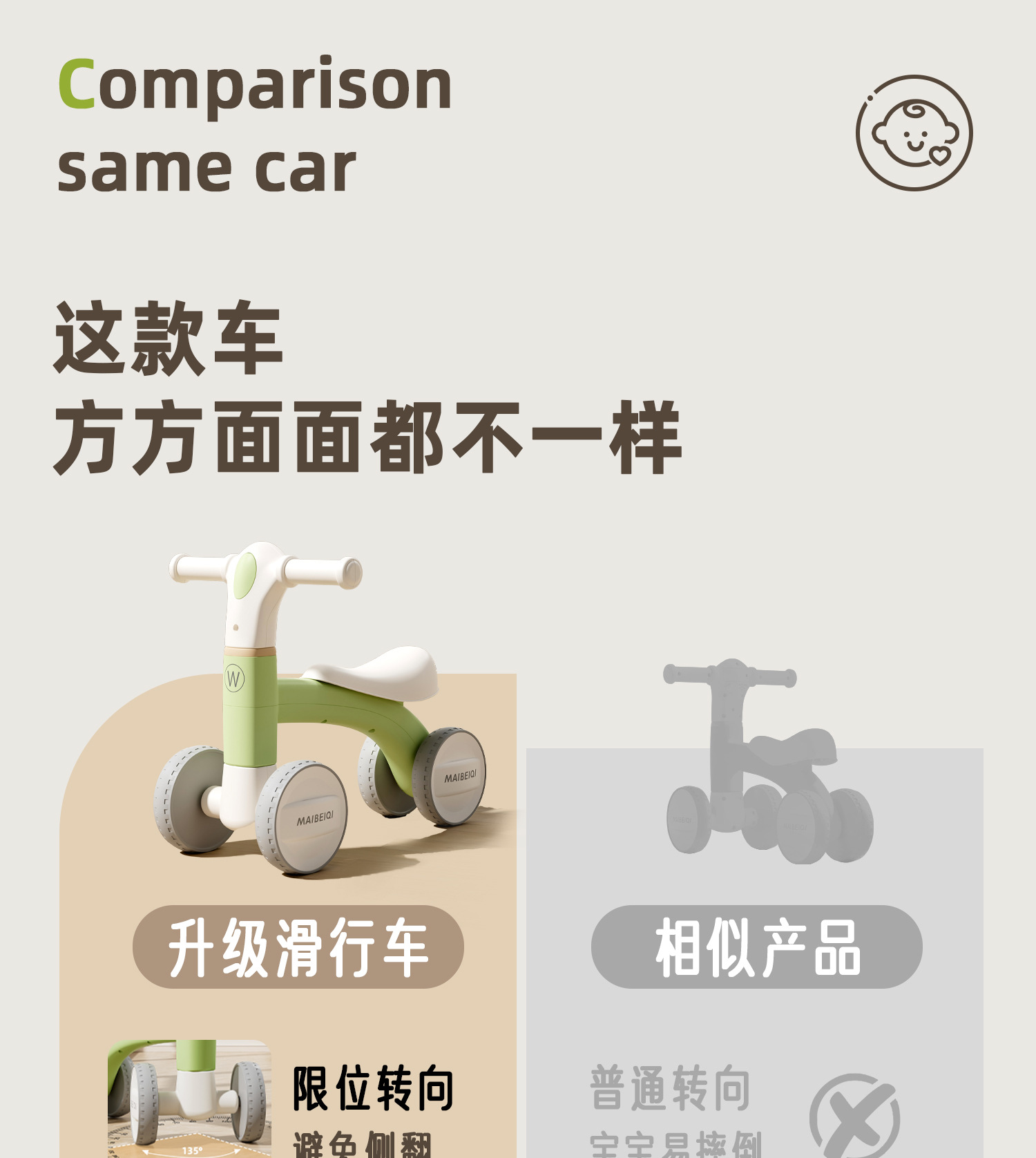 Детский самокат-балансир для детей от 1 до 3 лет, самокат без педалей для малышей, четырехколесный самокат для младенцев