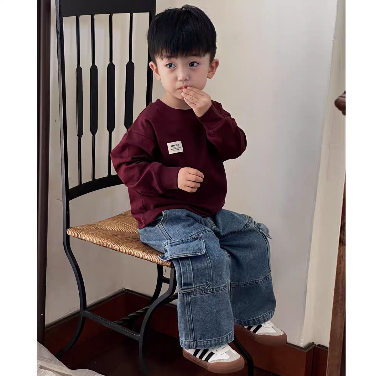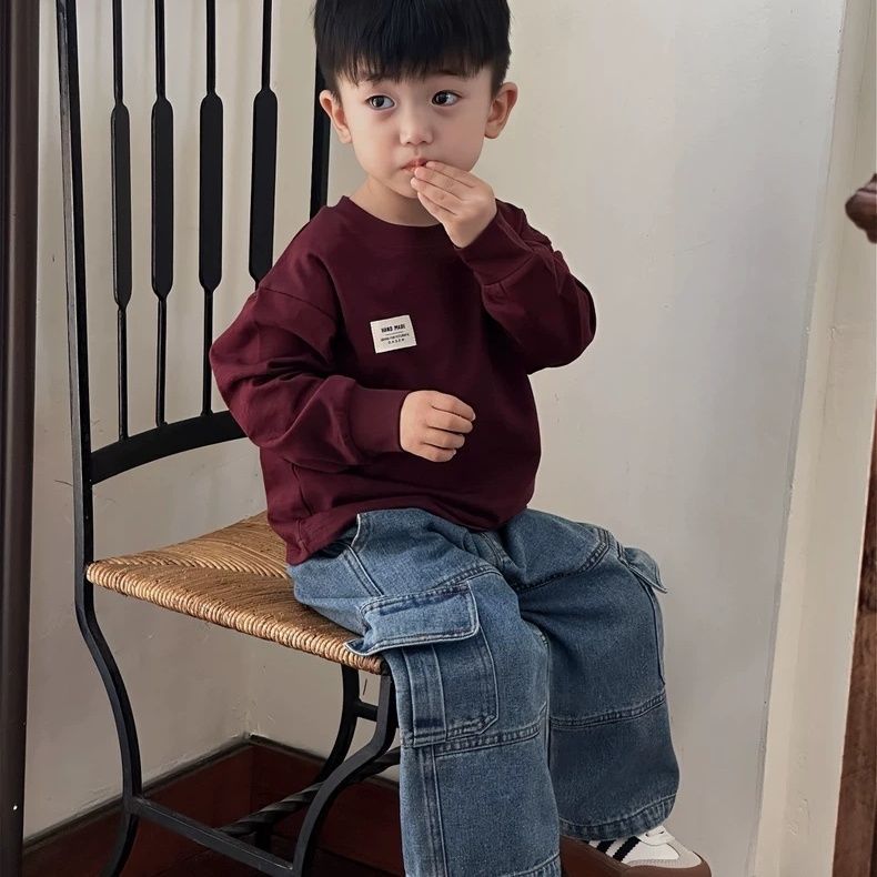 Джинсы для мальчиков, корейский стиль, универсальные свободные брюки-карго, модный детский бренд, детские осенние повседневные прямые брюки, весна и осень.