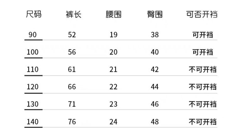 80cm; 90cm; 100cm; 110cm; 120cm; 130cm; 140cm