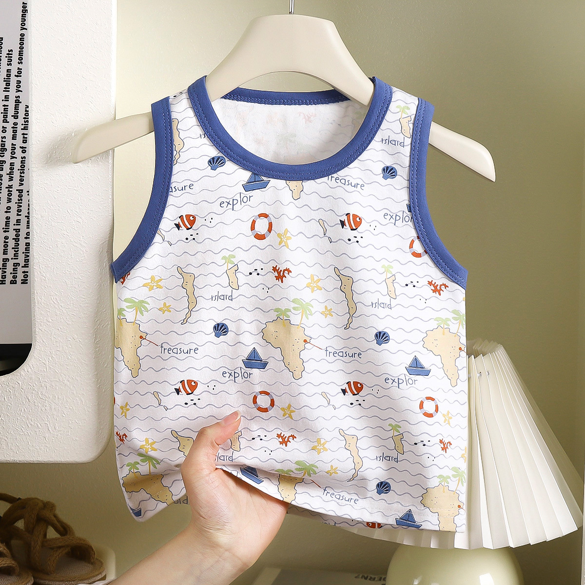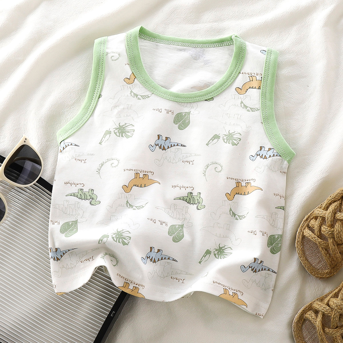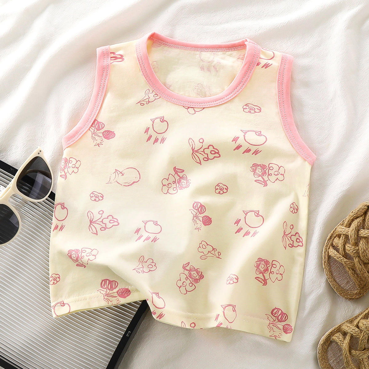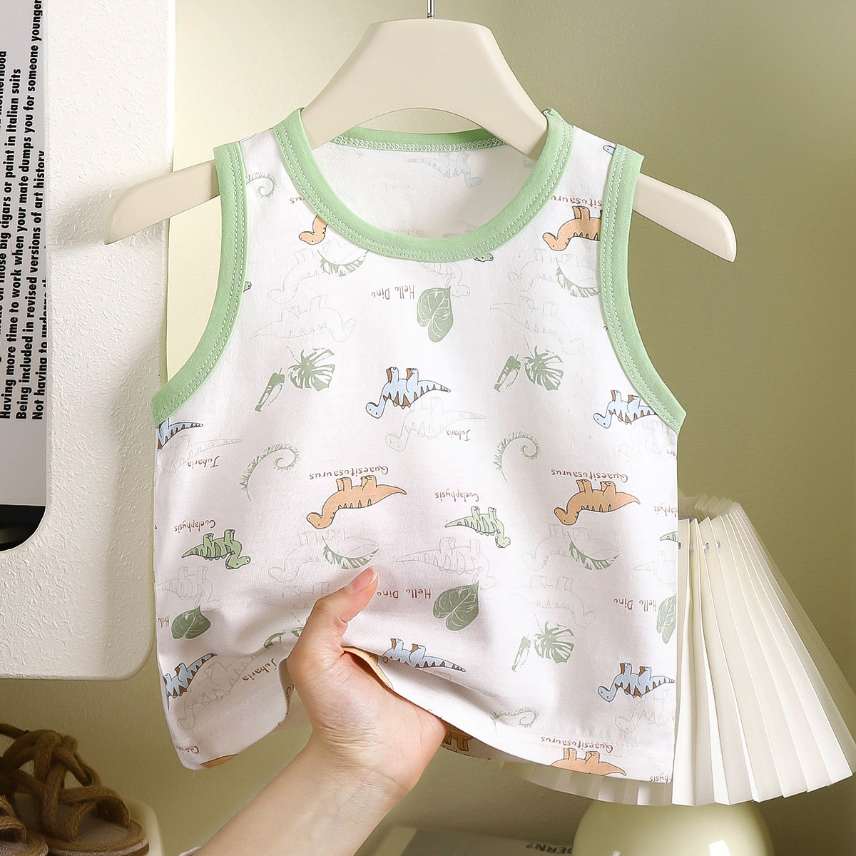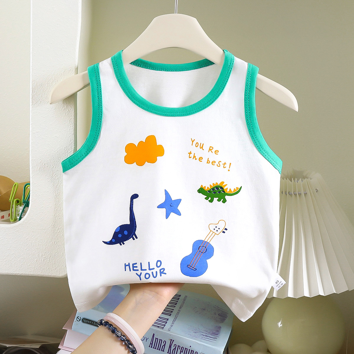 Детский жилет хлопок летом 2025 новый класс мальчиков и девочек мультфильм без рукавов детская одежда оптом