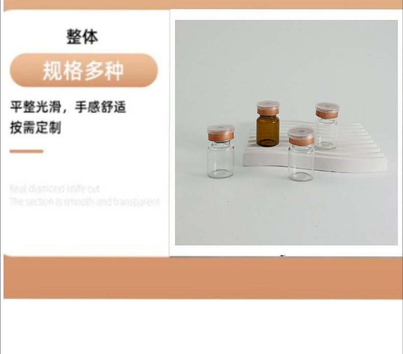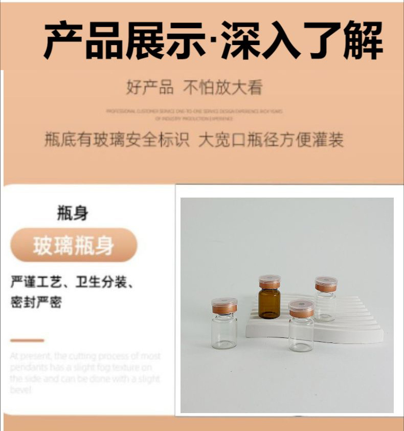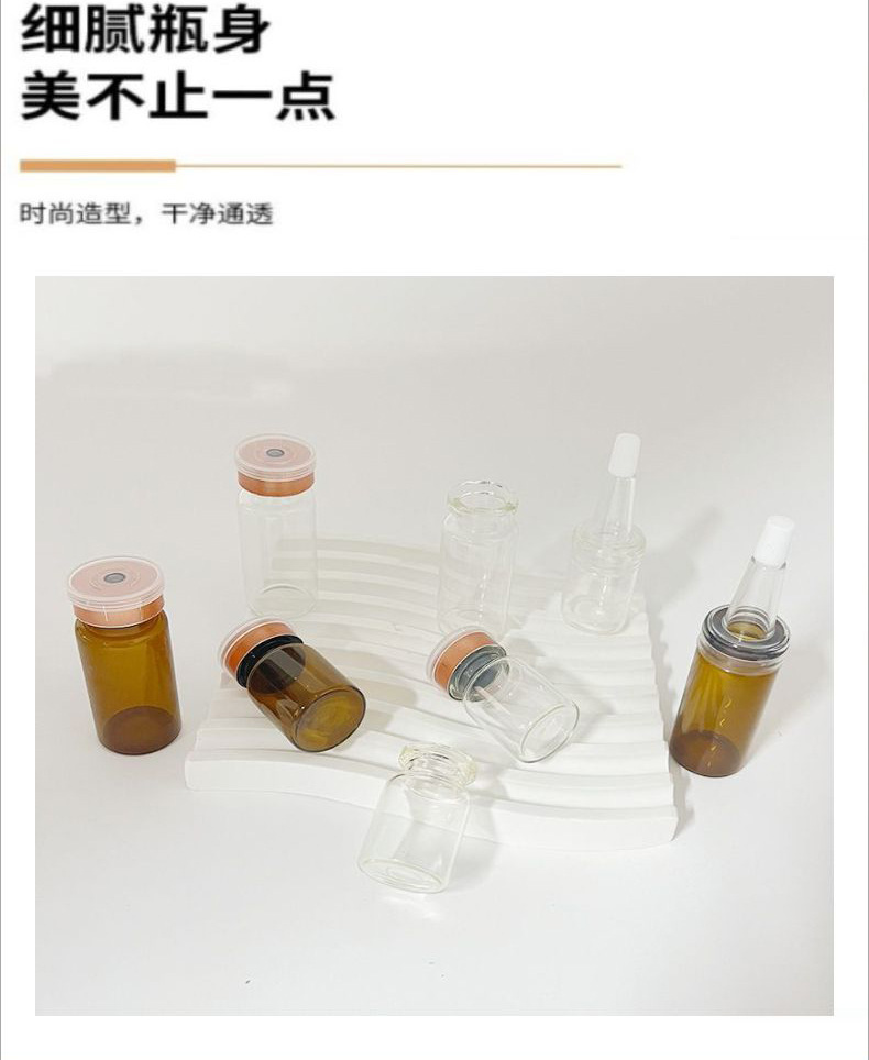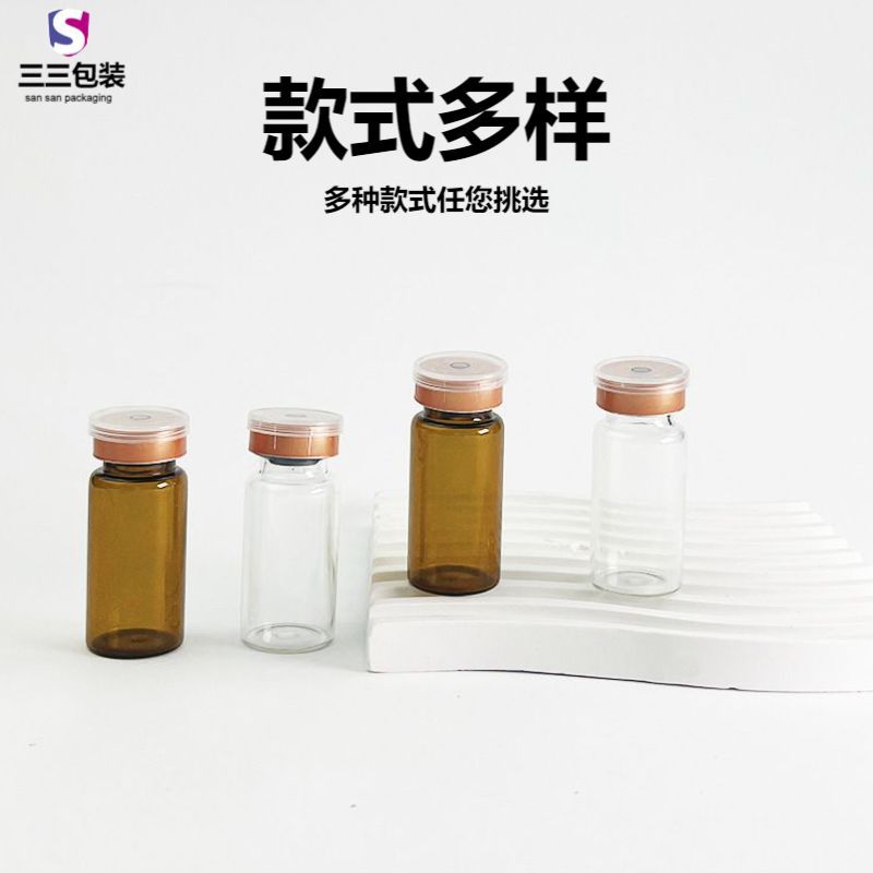 Флакон для дозирования лиофилизированного порошка 5 мл, 10 мл, стеклянная бутылочка для ухода за кожей, янтарная косметическая ампула с защелкивающейся крышкой для гиалуроновой кислоты.