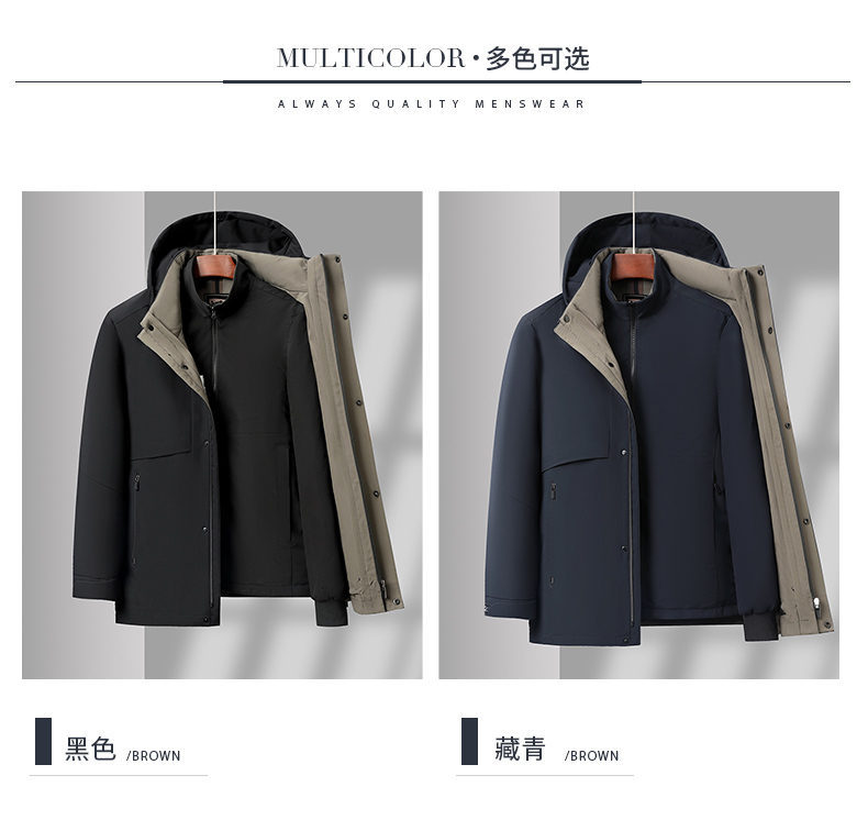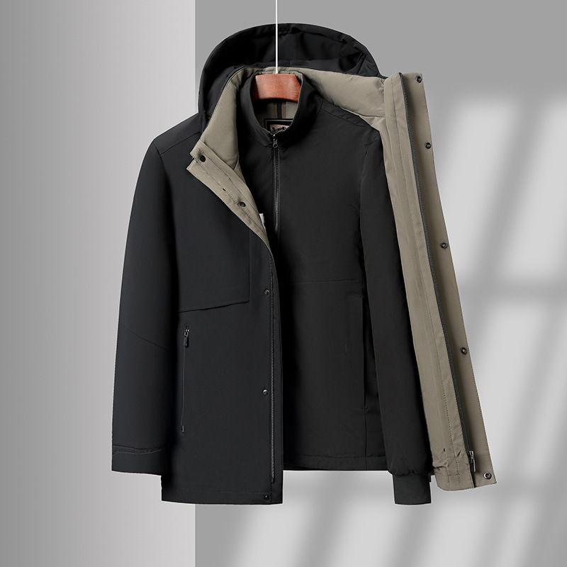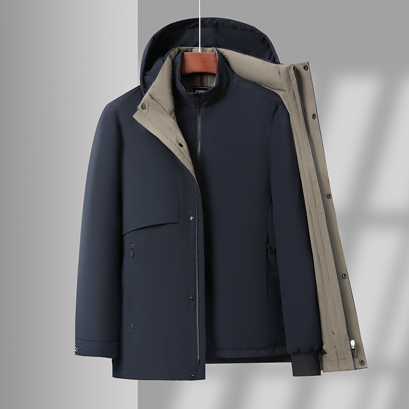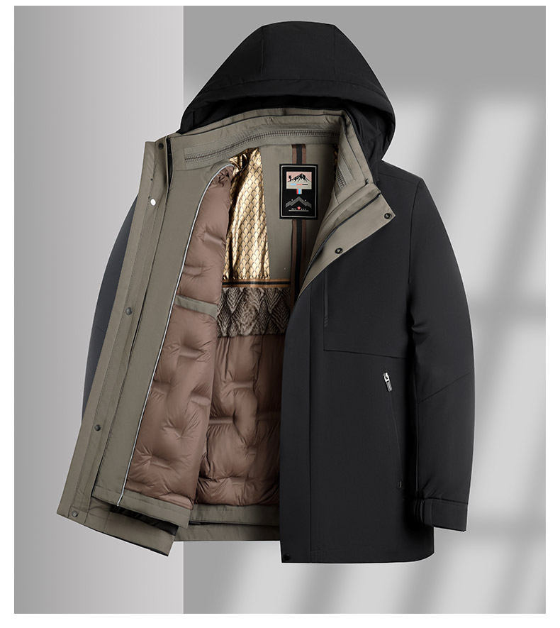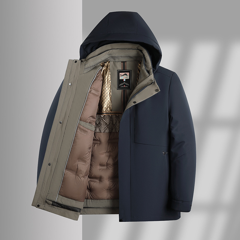 Мужской пуховик со съемной подкладкой, новая зимняя модель для пап среднего и старшего возраста, пуховик с капюшоном из гусиного пуха