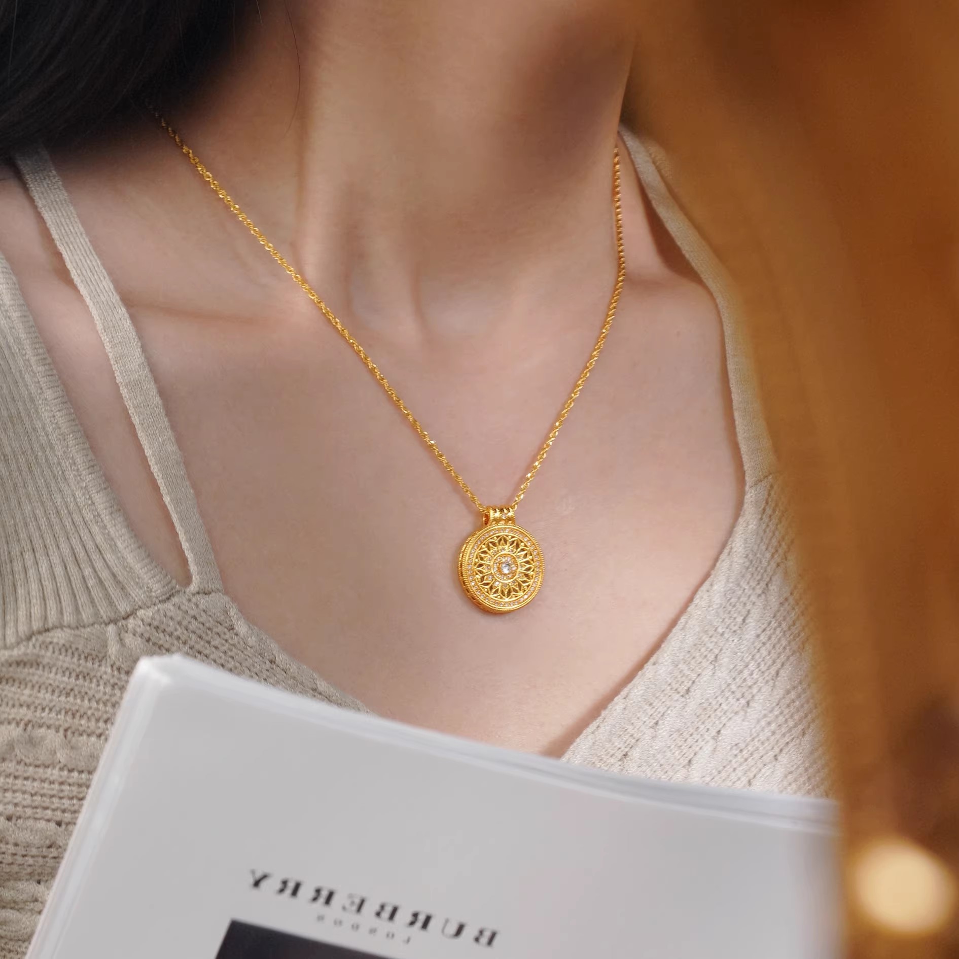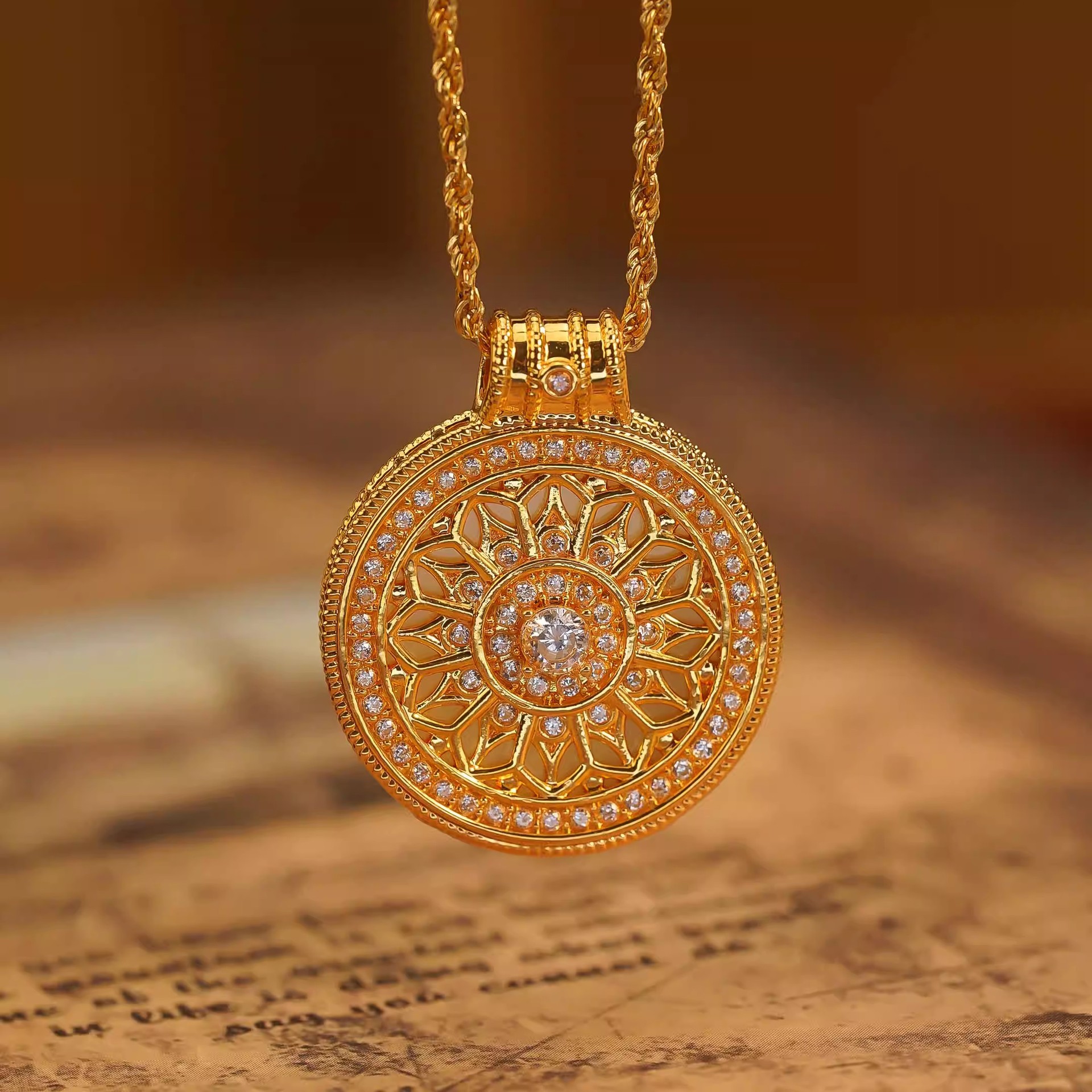 18K золотой подвес с компасом в виде подсолнуха, белый муассанит, новое золотое ожерелье, подвеска в форме ракушки, оптовая продажа