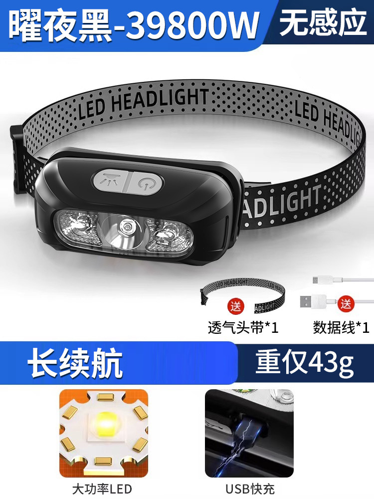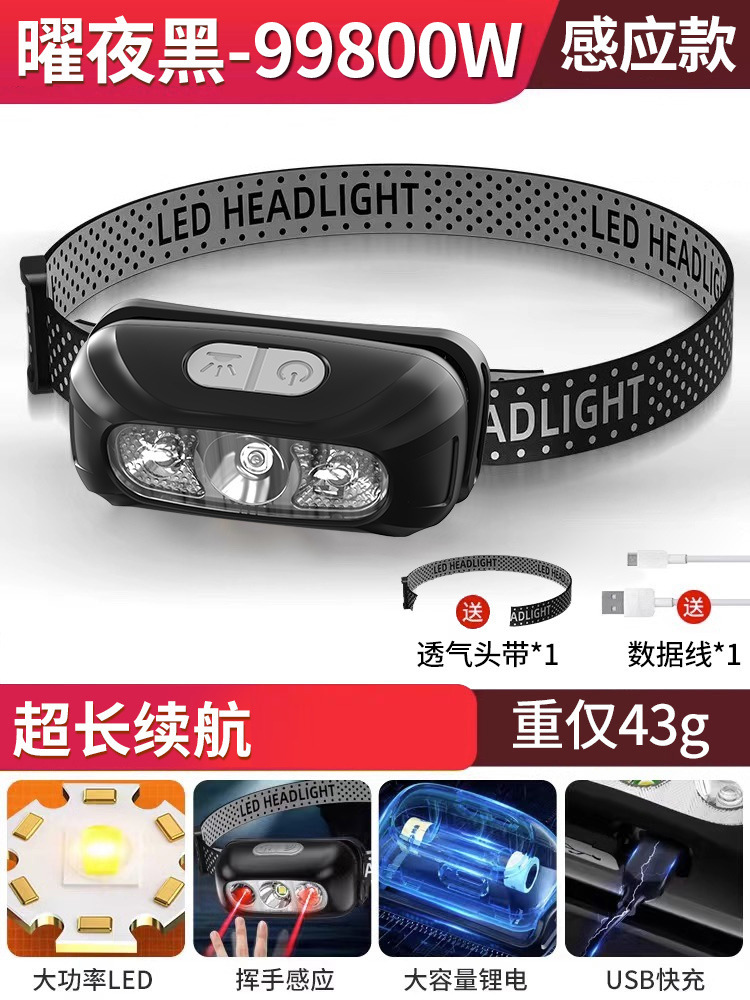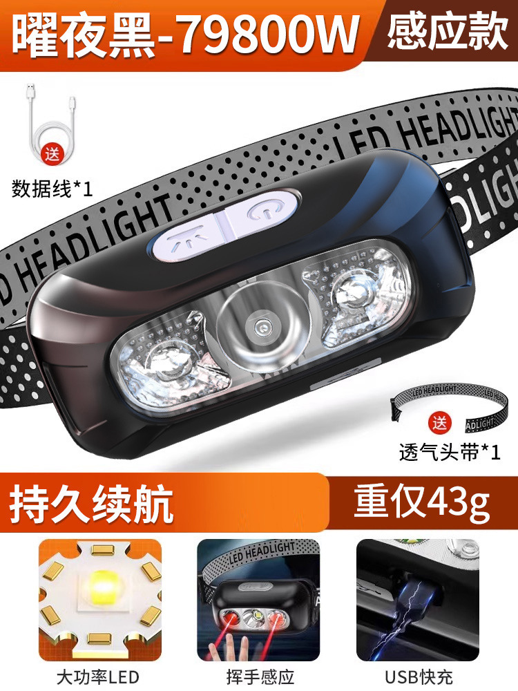 Сильный свет фары заряжает супер яркую голову ночное рыболовное освещение на открытом воздухе сверхдлинный срок службы сверхлегкий индукционный маленький фонарик