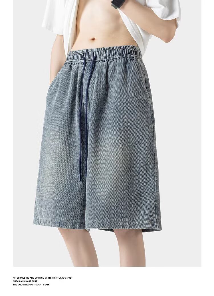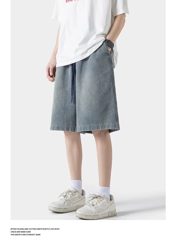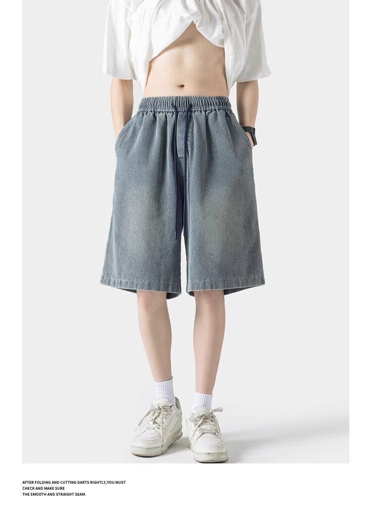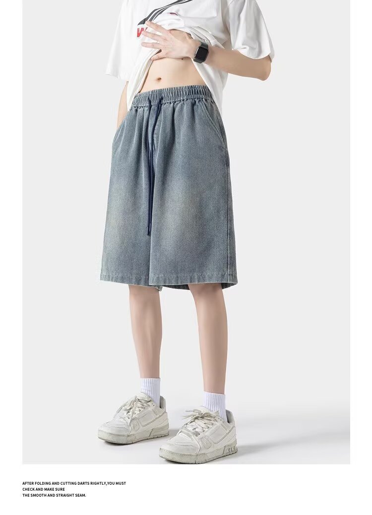 Летние новые американские шорты мужской прилив тонкий дизайн чувство нишевые свободные джинсы плюс размер укороченные брюки