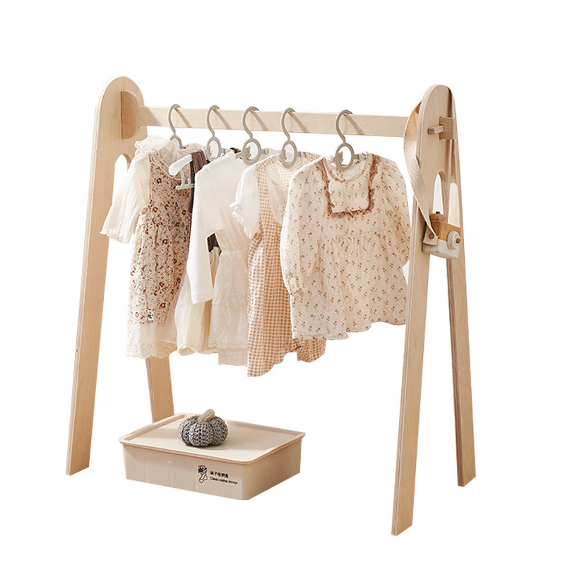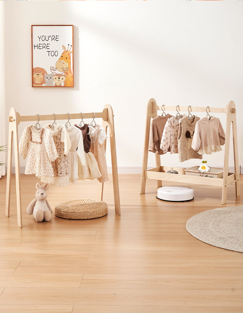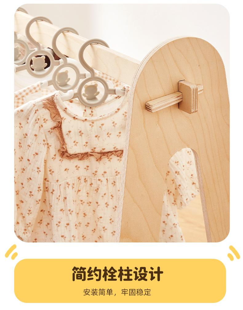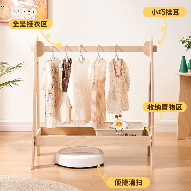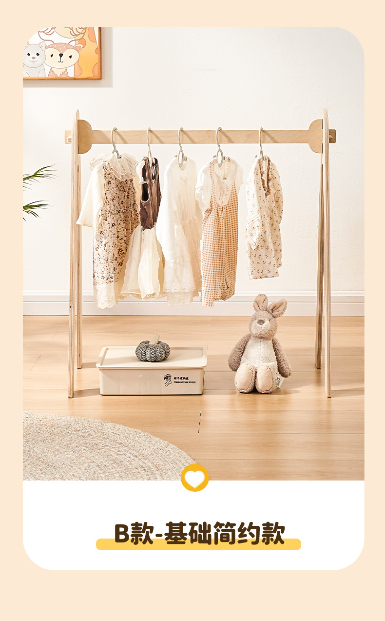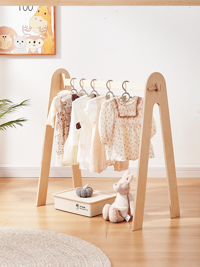 Вешалка для детской одежды, напольная вешалка для одежды из цельного дерева, вешалка для домашней одежды для спальни, вертикальная простая вешалка для хранения детской одежды