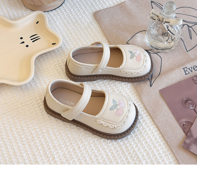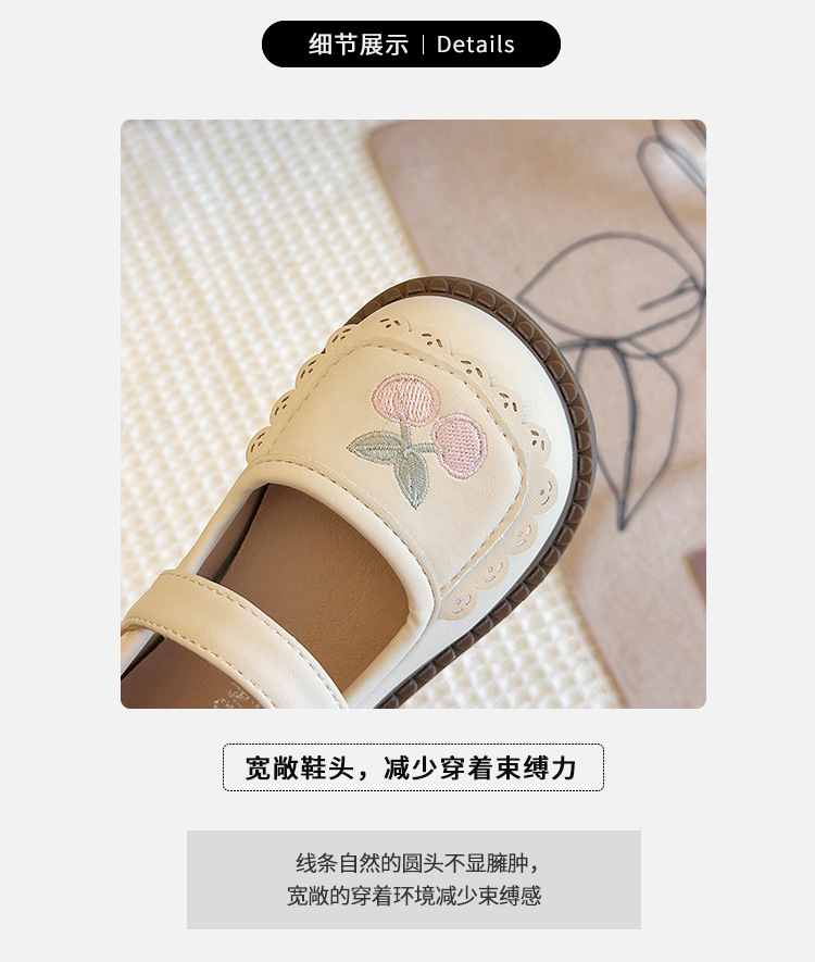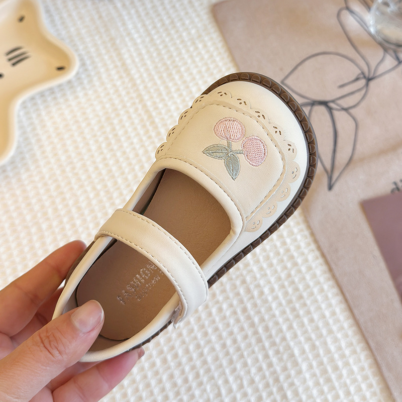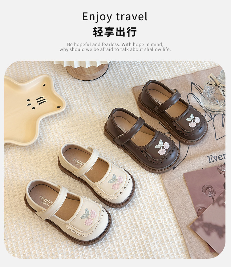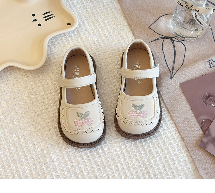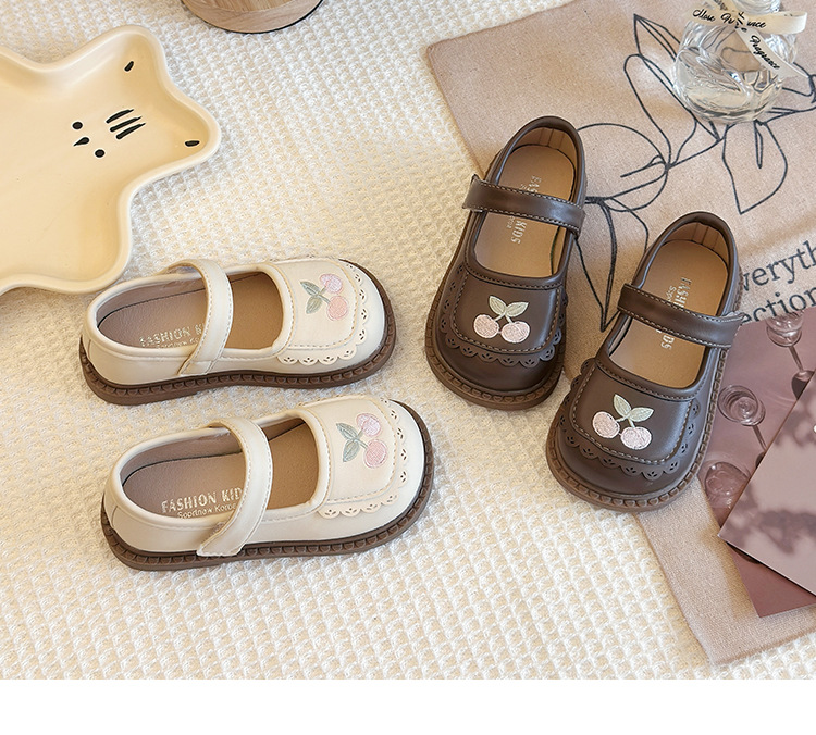 Маленькие кожаные туфли для детей Женские туфли 2025 Новый стиль девушки мягкая подошва вишневые одиночные туфли модные детские туфли