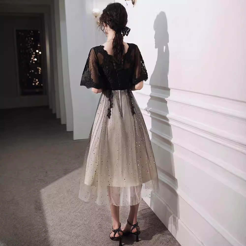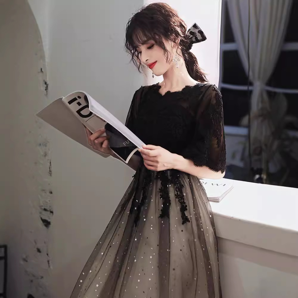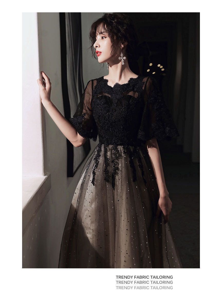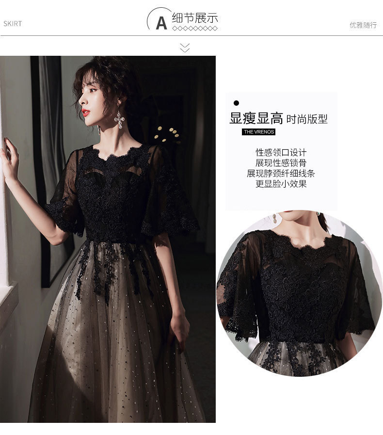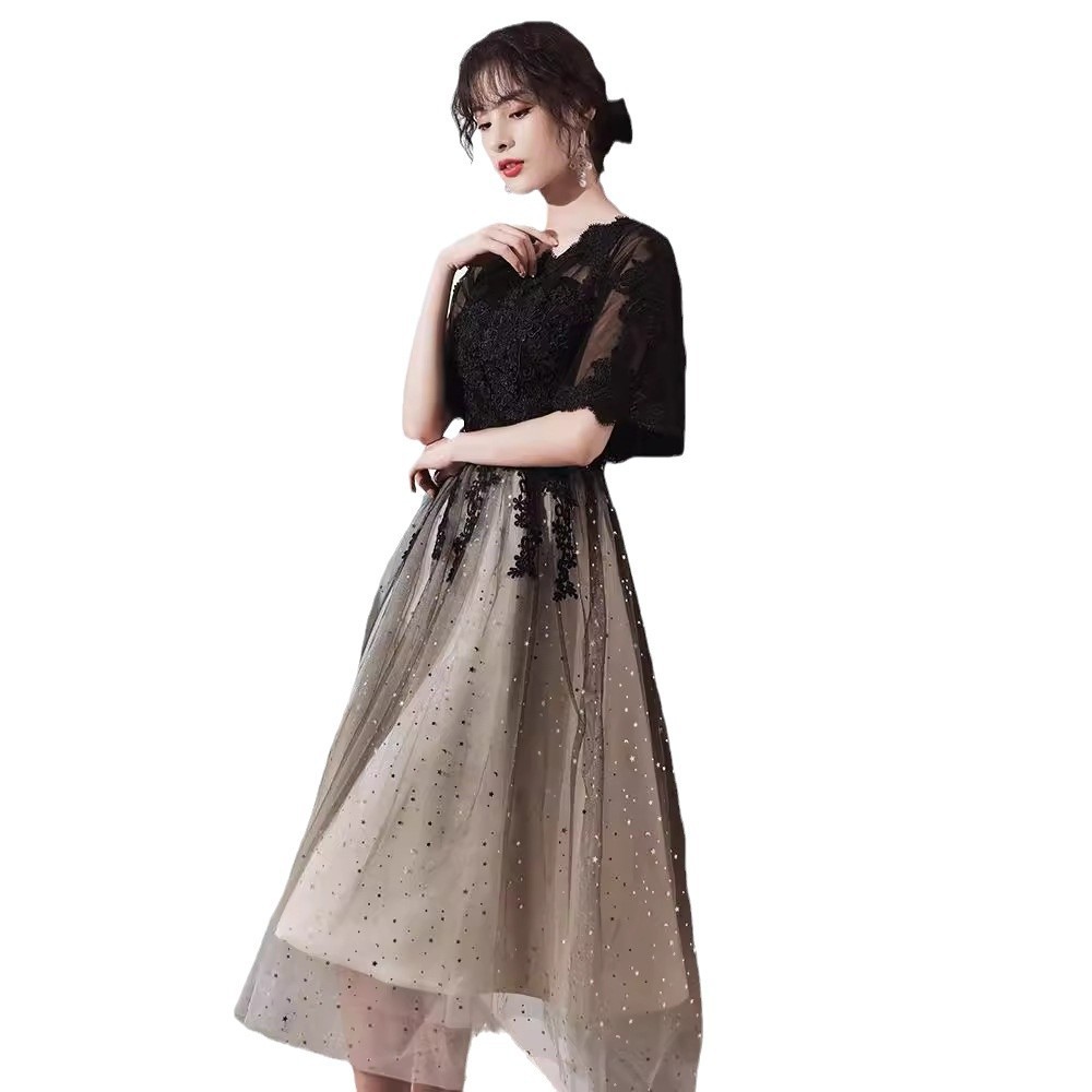 Вечернее платье для женщин на ежегодное собрание, новинка осени 2025, элегантное банкетное платье, скрывающее живот, черное, стройнящее, подходит для повседневной носки и для ведущих мероприятий.